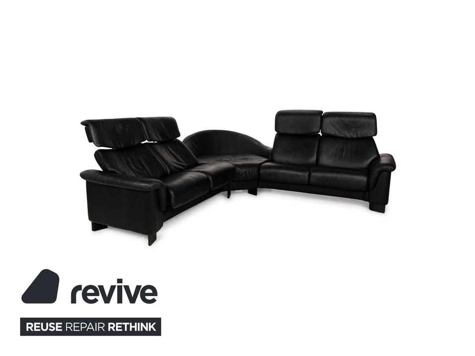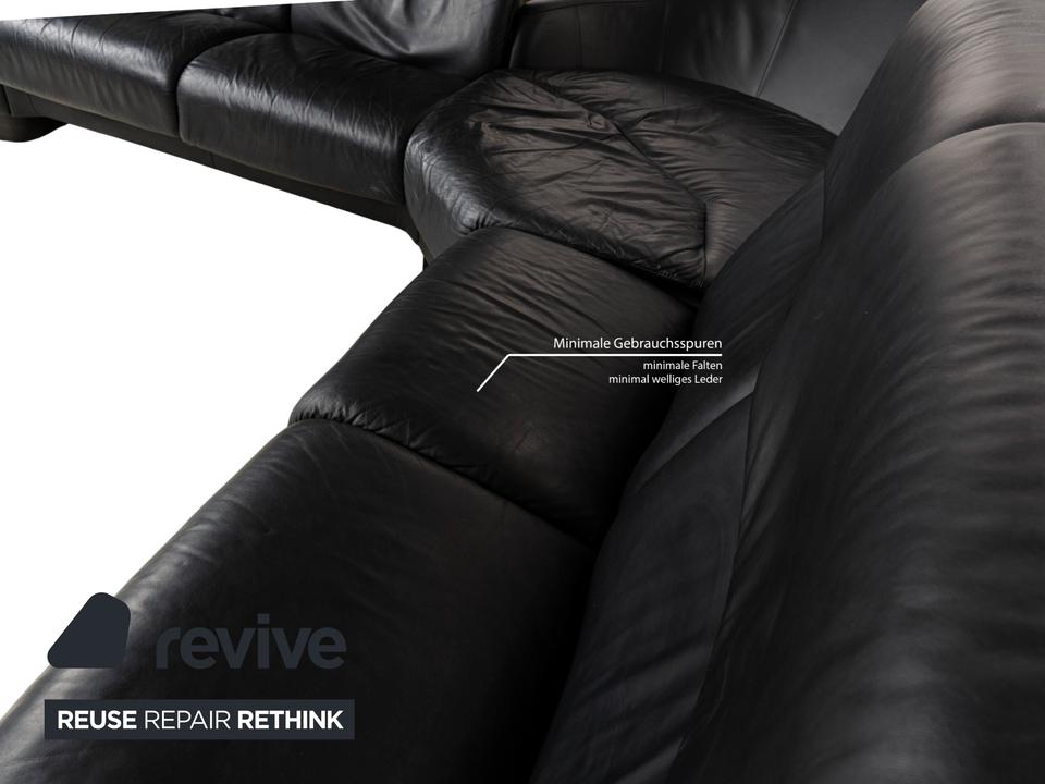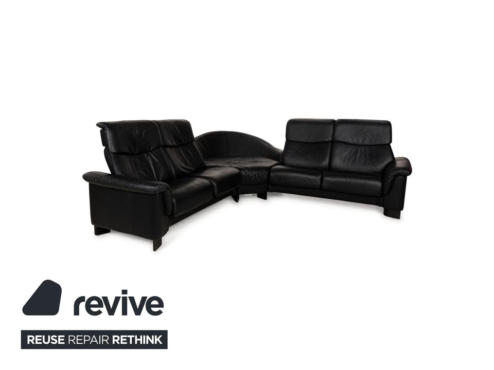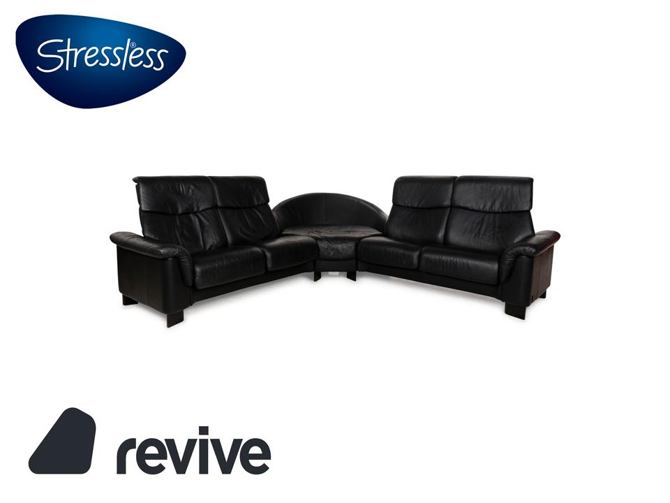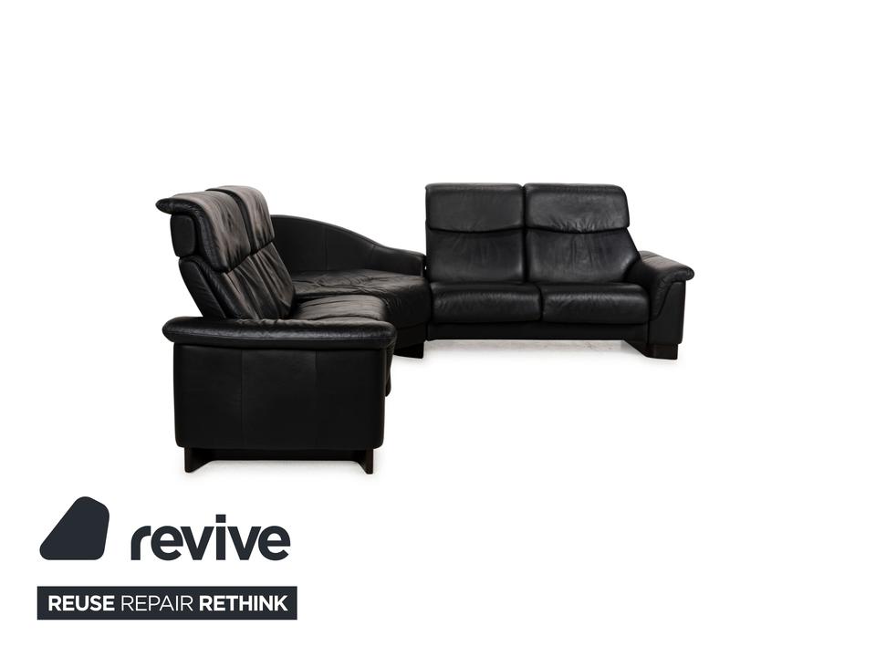 Das Sofa Paradise von Stressless ist mit schwarzem Leder bezogen und steht auf schmalen, schwarzen Holzfüßen. Es verfügt über zahlreiche, individuelle Verstellmöglichkeiten und garantiert so hohen Komfort. Das Ecksofa zeichnet sich durch das klassische, für den Hersteller typische Design aus,