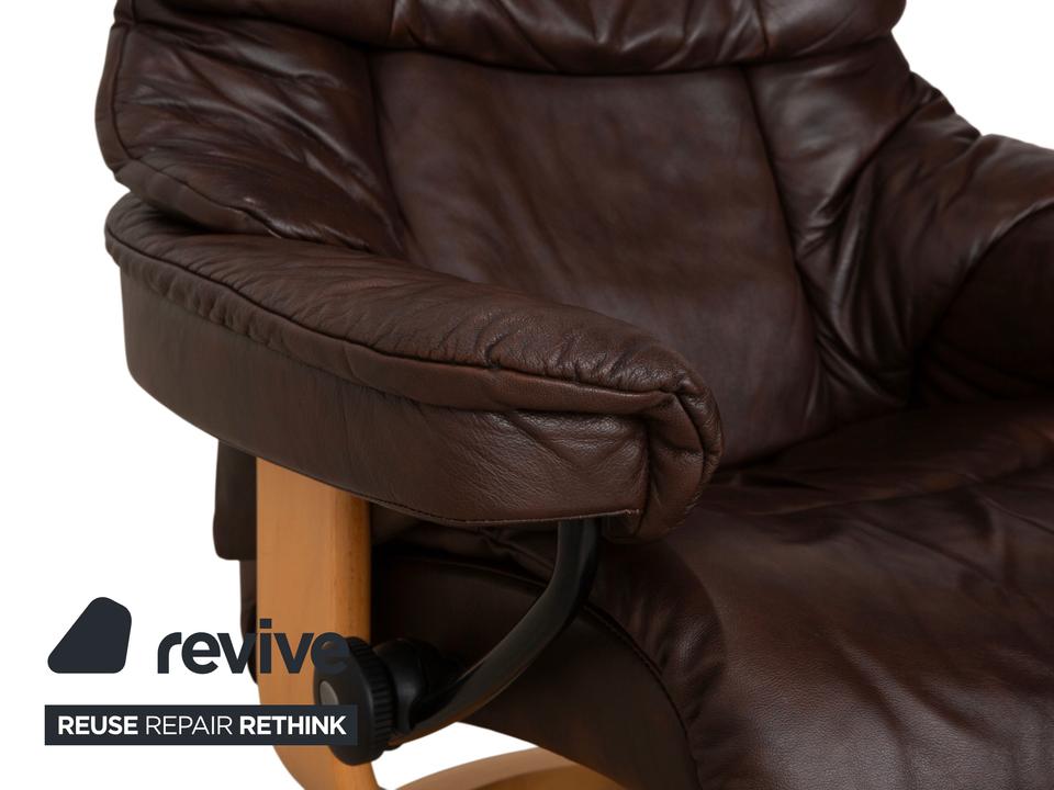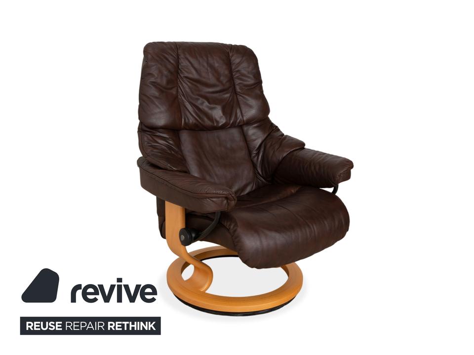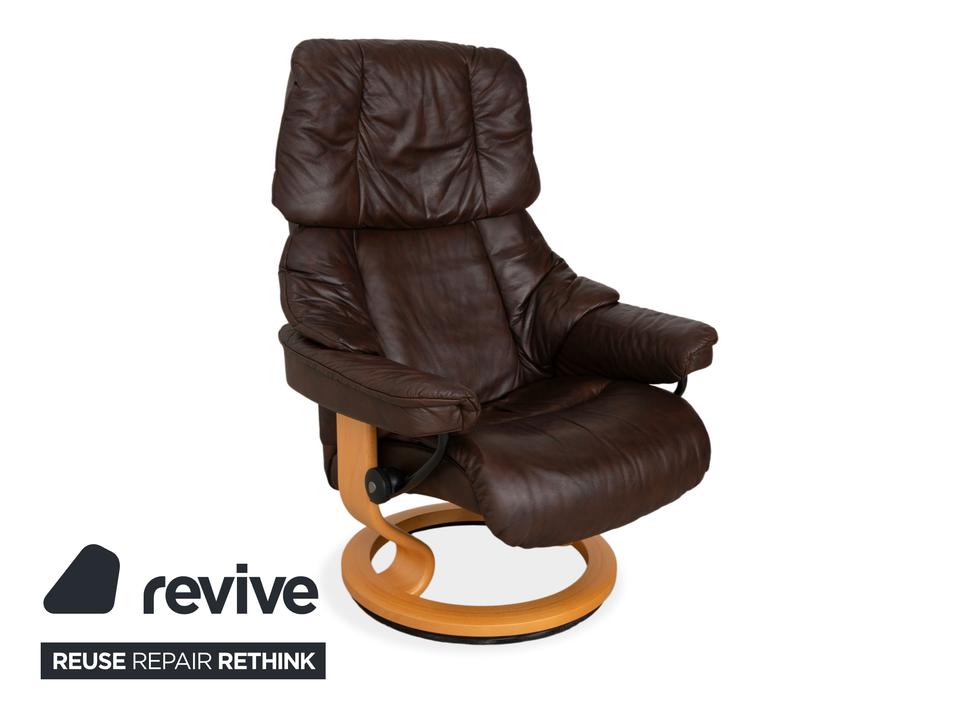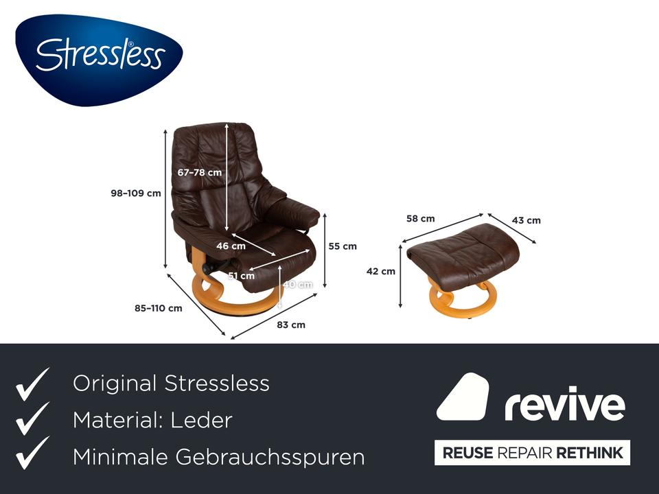 Der Stressless Reno gilt als einer der beliebtesten Möbel der norwegischen Marke. Mit seiner ikonischen, üppig gepolsterten Form und der weichen Knautschoptik lädt dieser Sessel sofort zum Hineinsinken ein. Das hochwertige Leder in sattem Braun strahlt eine wohnliche Ruhe aus. Das geschwungene helle Holzgestell bildet dazu einen edlen Kontrast und sorgt für zeitlose Eleganz in deinem Wohnzimmer.Das Herzstück dieses Sessels ist seine geniale Funktionalität. Dank des Gleitsystems passt sich die Sitzposition ganz intuitiv und stufenlos der natürlichen Bewegungen an: allein durch die Verlagerung deines Körpergewichts, ganz ohne störende Hebel. Zusammen mit dem passenden Hocker, auf dem man die Beine entspannt ablegen kann, so genießt man ein ergonomisches Sitzerlebnis der Extraklasse.