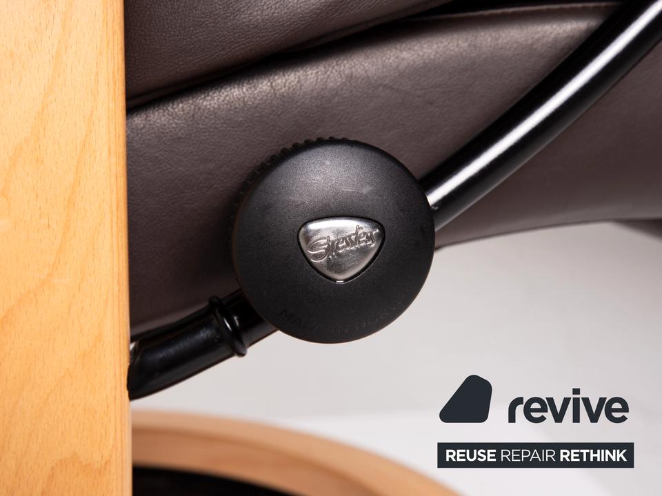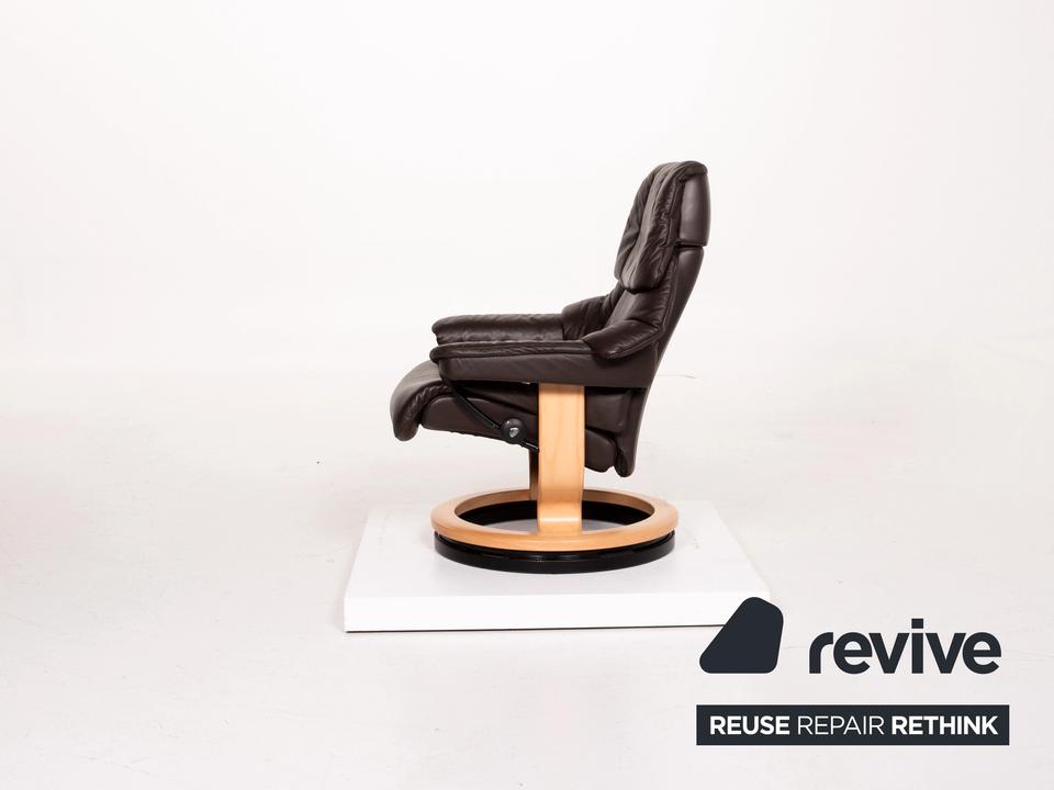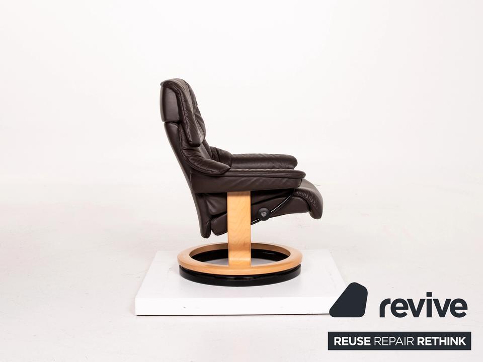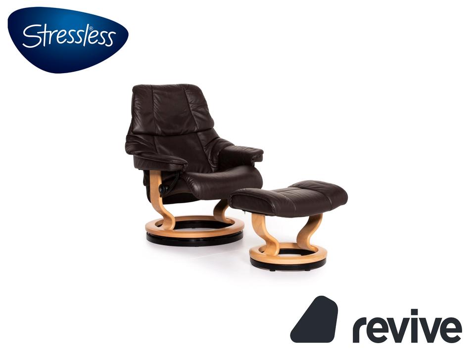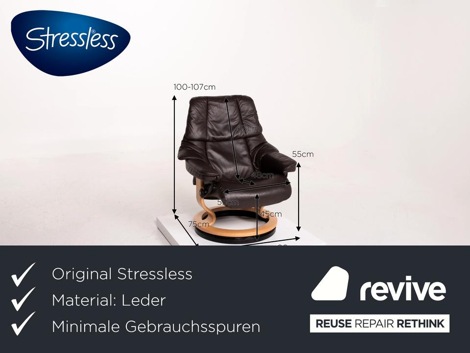 Der Stressless Sessel Reno der Größe M ist mit einem dunkelbraunen Echtleder bezogen und bietet höchsten Komfort, um seinem Namen alle Ehre zu machen. Die Relax-Funktion lädt zum Entspannen ein. Der passende Hocker bietet die Möglichkeit die Füße hochzulegen.Der Sessel eignet sich optimal für Menschen mit einer Körpergröße von bis zu 1,80m.
