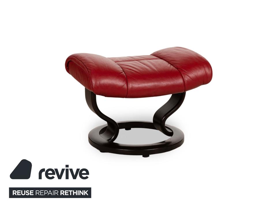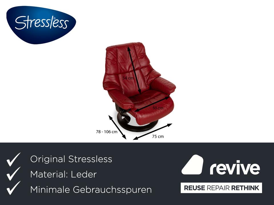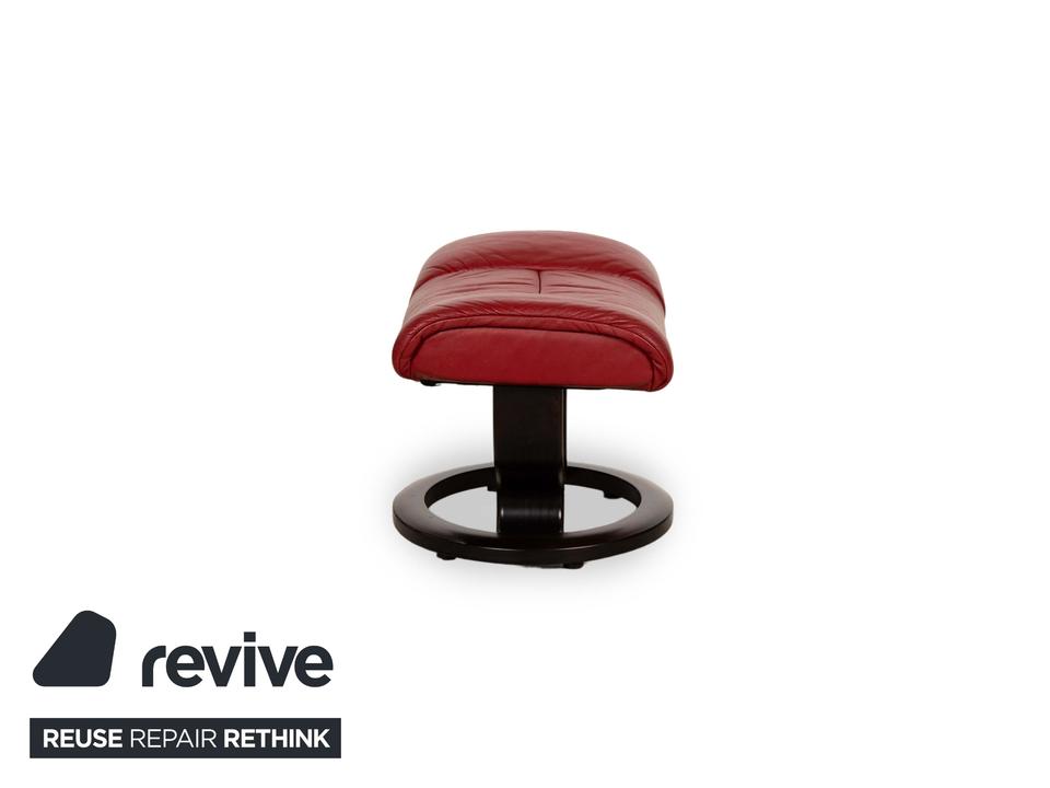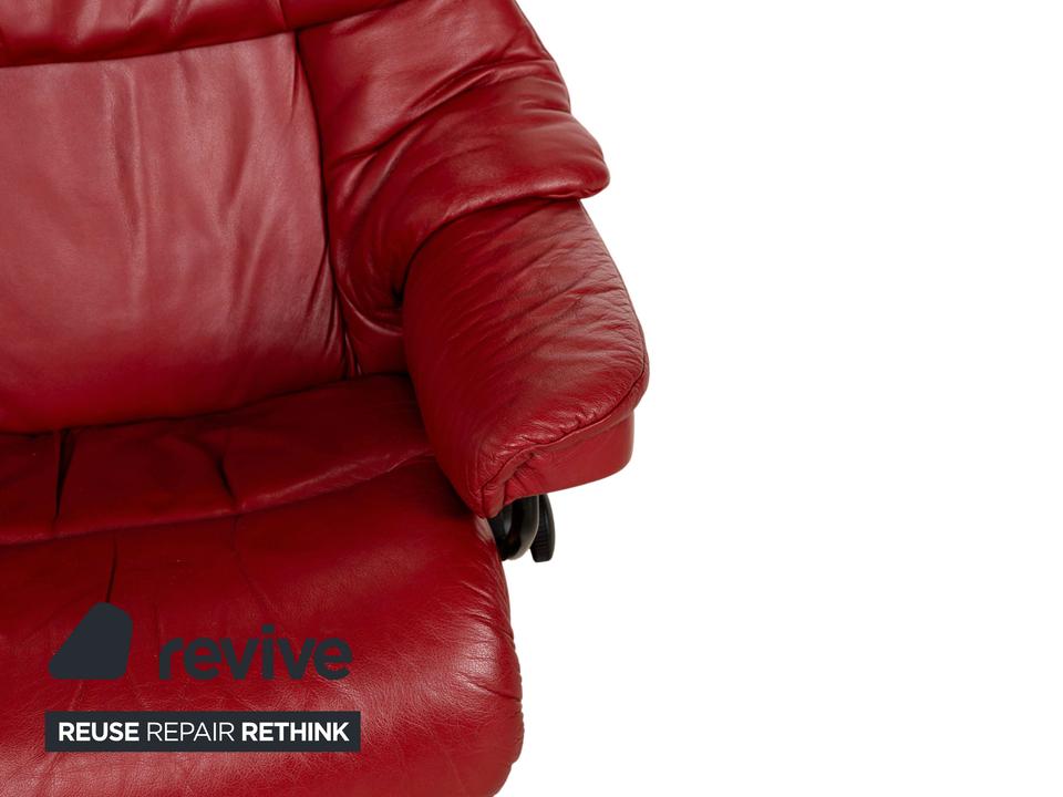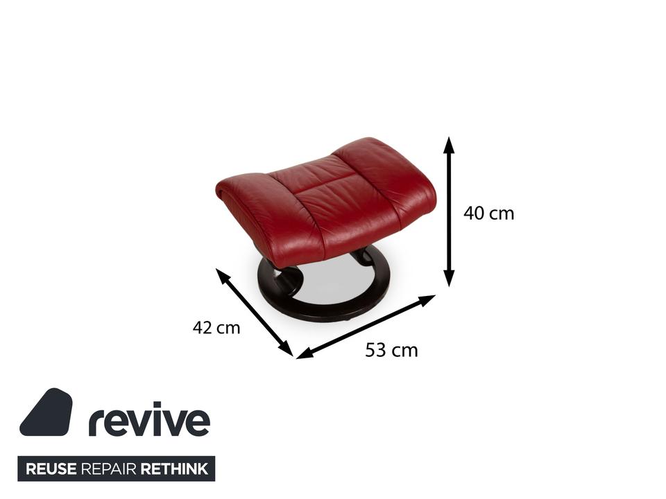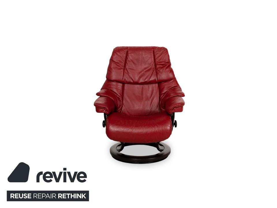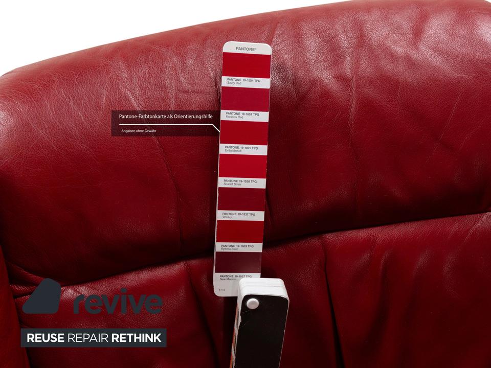 Dieser luxuriöse Stressless Reno Leder Sessel in kräftigem Rot mit passendem Hocker bietet ultimativen Komfort und Stil. Der hochwertige Lederbezug sorgt für ein edles Erscheinungsbild. Die ergonomische Form des Sessels passt sich perfekt dem Körper an, während die gepolsterten Armlehnen und die geschwungene Rückenlehne maximale Entspannung garantieren. Der Hocker ergänzt das Ensemble ideal, sodass Du deine Füße hochlegen und den Komfort voll auskosten können.