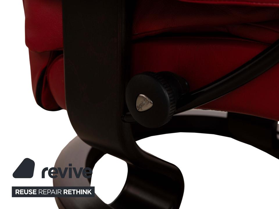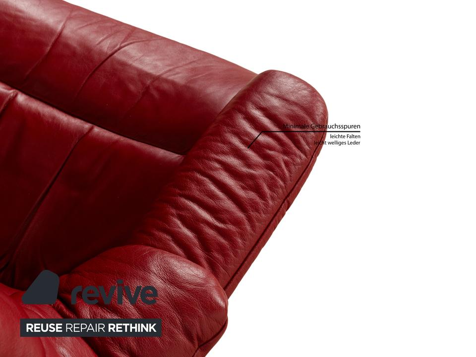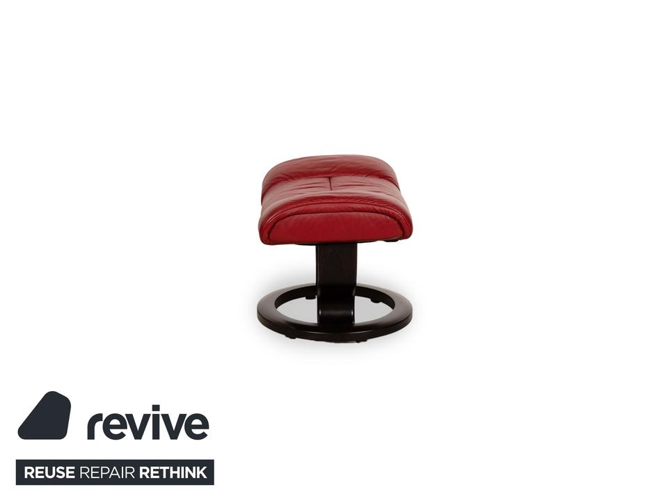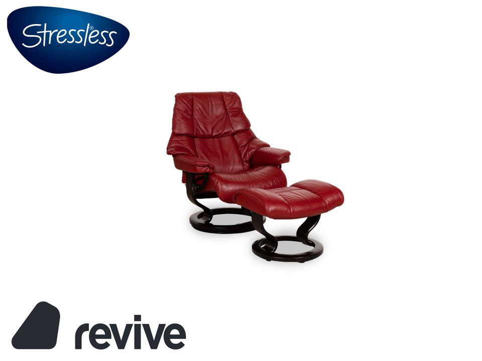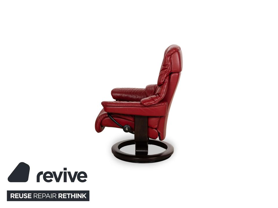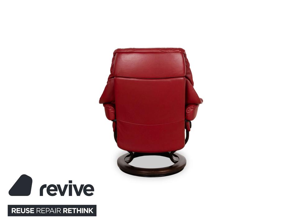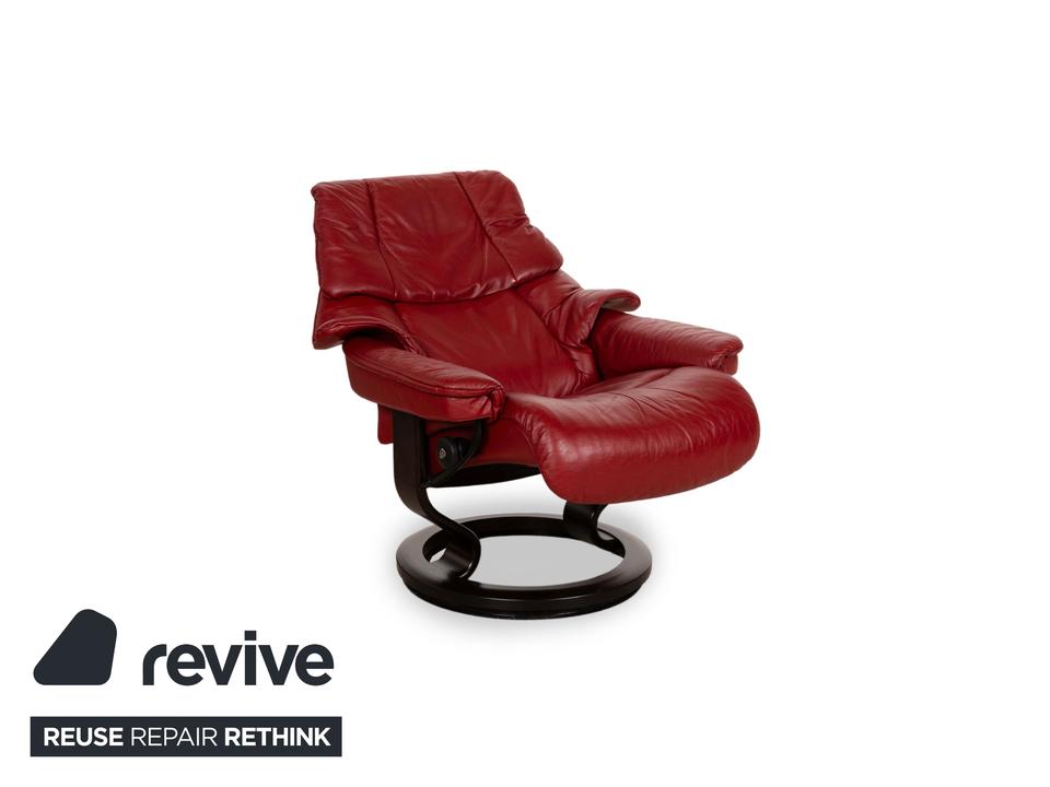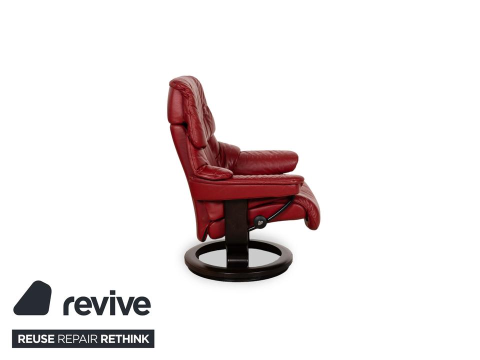 Dieser luxuriöse Stressless Reno Leder Sessel in kräftigem Rot mit passendem Hocker bietet ultimativen Komfort und Stil. Der hochwertige Lederbezug sorgt für ein edles Erscheinungsbild. Die ergonomische Form des Sessels passt sich perfekt dem Körper an, während die gepolsterten Armlehnen und die geschwungene Rückenlehne maximale Entspannung garantieren. Der Hocker ergänzt das Ensemble ideal, sodass Du deine Füße hochlegen und den Komfort voll auskosten können.