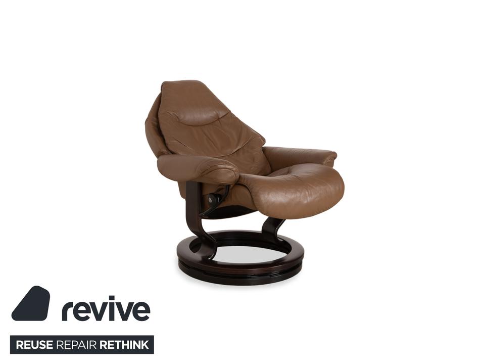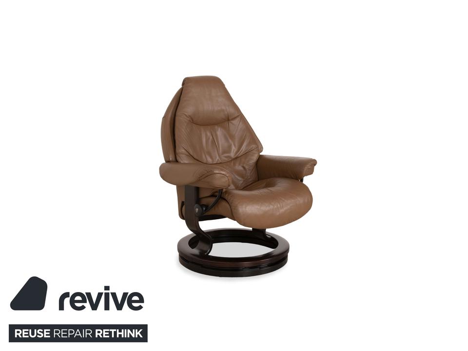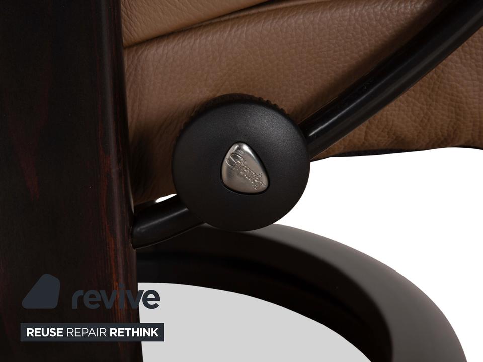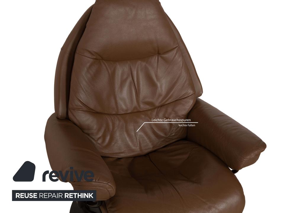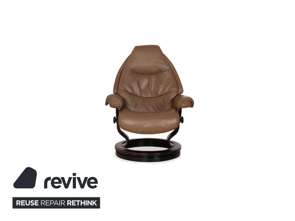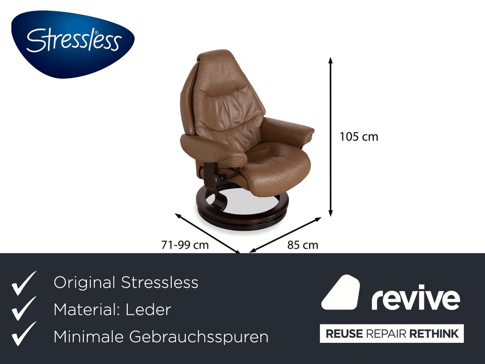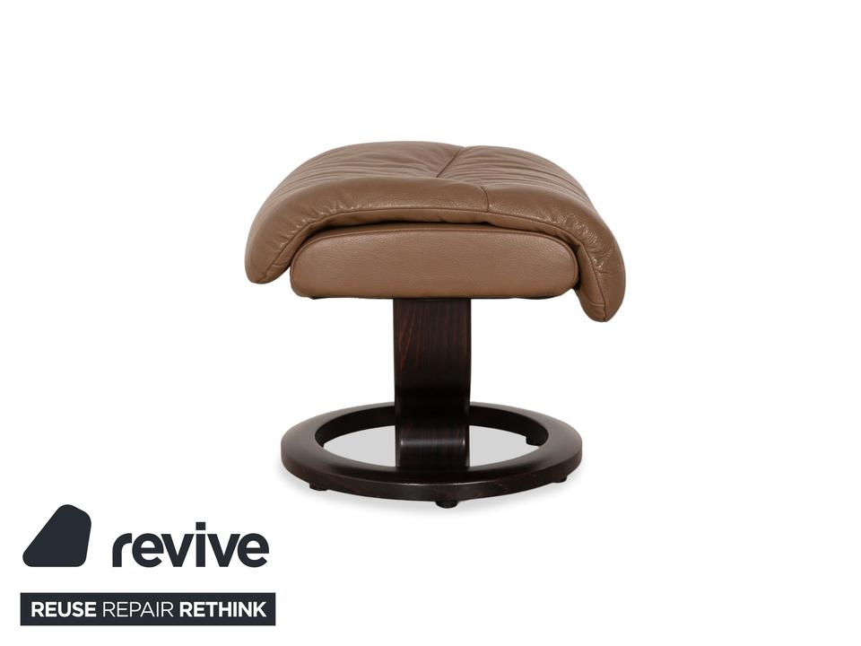 Dieser Stressless Voyager Leder Sessel mit passendem Fußhocker vereint Komfort mit Stil. Die weiche Lederpolsterung in einem dezenten Braunton lädt zum Verweilen ein und fügt sich harmonisch in unterschiedliche Einrichtungsstile ein. Der dunkle Holzfuß, kombiniert mit einem geschwungenen Design, verleiht dem Set eine zeitlose Eleganz. Perfekt geeignet für entspannte Stunden oder einen gemütlichen Leseabend!