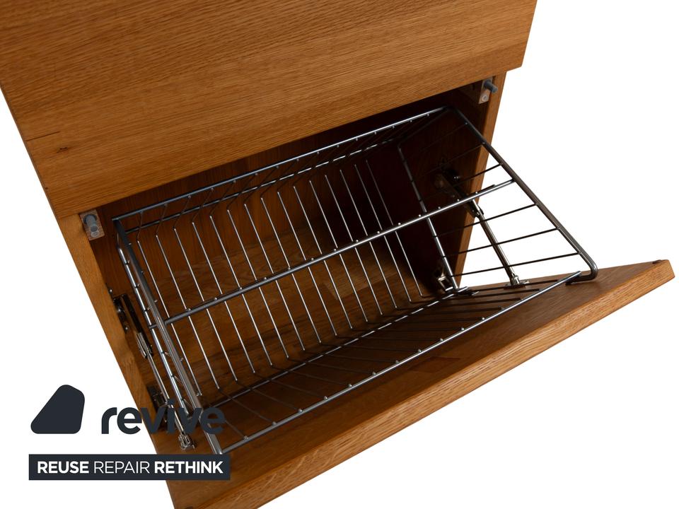 Hier holst du dir mit dem Team 7 Cubus Sideboard ein echtes Meisterstück aus österreichischem Naturholz in dein Zuhause. Das Design besticht durch die markante Struktur der Eiche, die dem Möbel eine wunderbar warme und lebendige Ausstrahlung verleiht. Uns fasziniert besonders die handwerkliche Qualität, denn die sichtbaren Holzverbindungen und die natürliche Maserung machen jedes Stück zu einem Unikat, das ordentlich Charakter in deinen Wohnraum bringt.Die klare, kubische Form sorgt für eine aufgeräumte Ästhetik und lässt das Sideboard trotz des massiven Materials angenehm zeitlos wirken. Auf der großzügigen Ablagefläche hast du viel Platz für schöne Deko, während das Innere der drei Klappfächer und der Schublade reichlich Stauraum für alles Wichtige bietet. Die dezenten, vertikalen Griffe setzen dabei einen modernen Akzent und unterstreichen den puristischen Look, der sich mühelos in verschiedene Einrichtungsstile integriert.