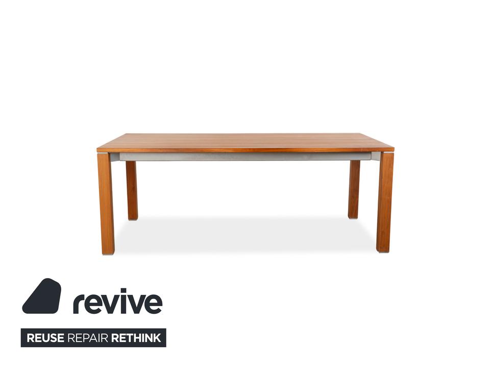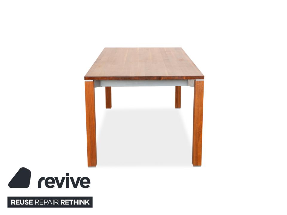 Der Team 7 Holz Esstisch steht für nachhaltige Qualität, zeitloses Design und höchste handwerkliche Präzision. Mit seiner klaren Formensprache und der warmen Ausstrahlung des braunen Holzes wird er zum natürlichen Mittelpunkt des Esszimmers.Gefertigt aus hochwertigem Massivholz, überzeugt der Tisch durch Stabilität, Langlebigkeit und eine lebendige Holzmaserung, die jedem Exemplar einen individuellen Charakter verleiht. Die sorgfältige Verarbeitung und die natürliche Oberflächenbehandlung unterstreichen den authentischen und wertigen Eindruck.Ein besonderes Highlight ist die integrierte Ausziehfunktion, mit der sich der Tisch flexibel vergrößern lässt. So bietet er im Alltag eine elegante, kompakte Form und schafft bei Bedarf mühelos zusätzlichen Platz für Familie und Gäste.