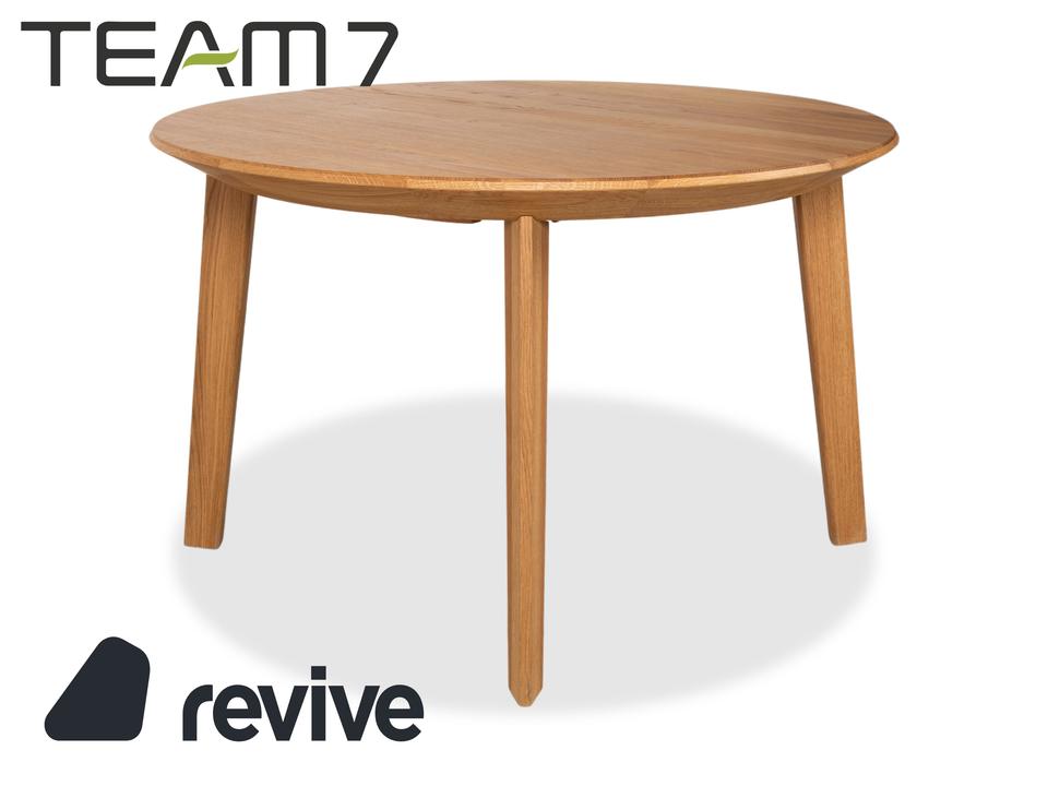 Dieser Esstisch aus der Miro-Serie von Team 7 ist ein hervorragendes Beispiel für die hohe Kunst der österreichischen Möbelmanufaktur. Team 7 ist weltweit bekannt für die Verarbeitung von reinem Naturholz aus nachhaltiger Forstwirtschaft, das ausschließlich mit natürlichem Öl veredelt wird.Der Miro-Tisch besticht durch seine zeitlose, runde Form, die eine gesellige Atmosphäre schafft und sich organisch in verschiedenste Wohnstile einfügt.