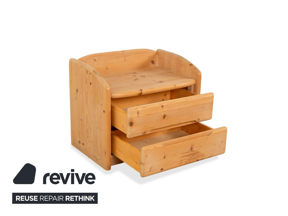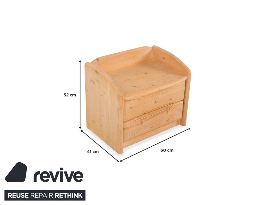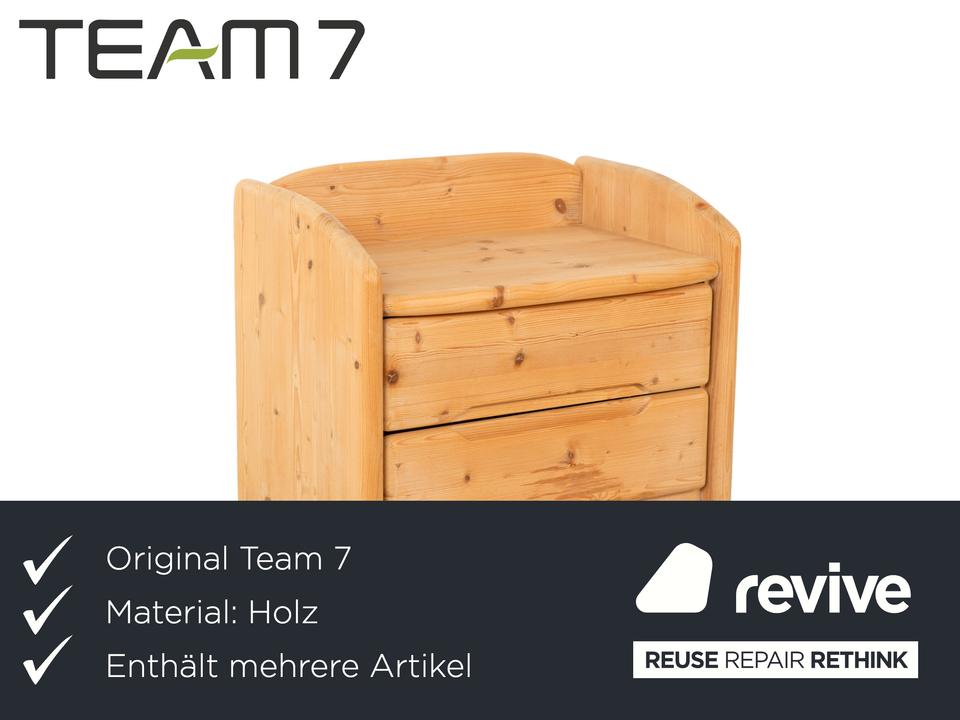 Dieses Nachttisch-Set von Team7 besteht aus zwei perfekt aufeinander abgestimmten Beistellmöbeln, gefertigt aus hochwertigem Massivholz in einem warmen, harmonischen Braunton. Die natürliche Holzmaserung und lebendige Aststruktur verleihen beiden Stücken ihren charakteristischen, naturverbundenen Look. Durch die sanft abgerundeten Seiten und Kanten entsteht eine weiche, organische Formensprache, die sich mühelos in verschiedenste Einrichtungsstile integriert. Jede der beiden Kommoden verfügt über zwei geräumige Schubladen mit integrierten Griffmulden, die für ein klares, ruhiges Gesamtbild sorgen. Das Set bringt Ordnung, Stil und eine warme, gemütliche Atmosphäre in jedes Schlafzimmer.