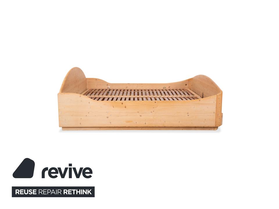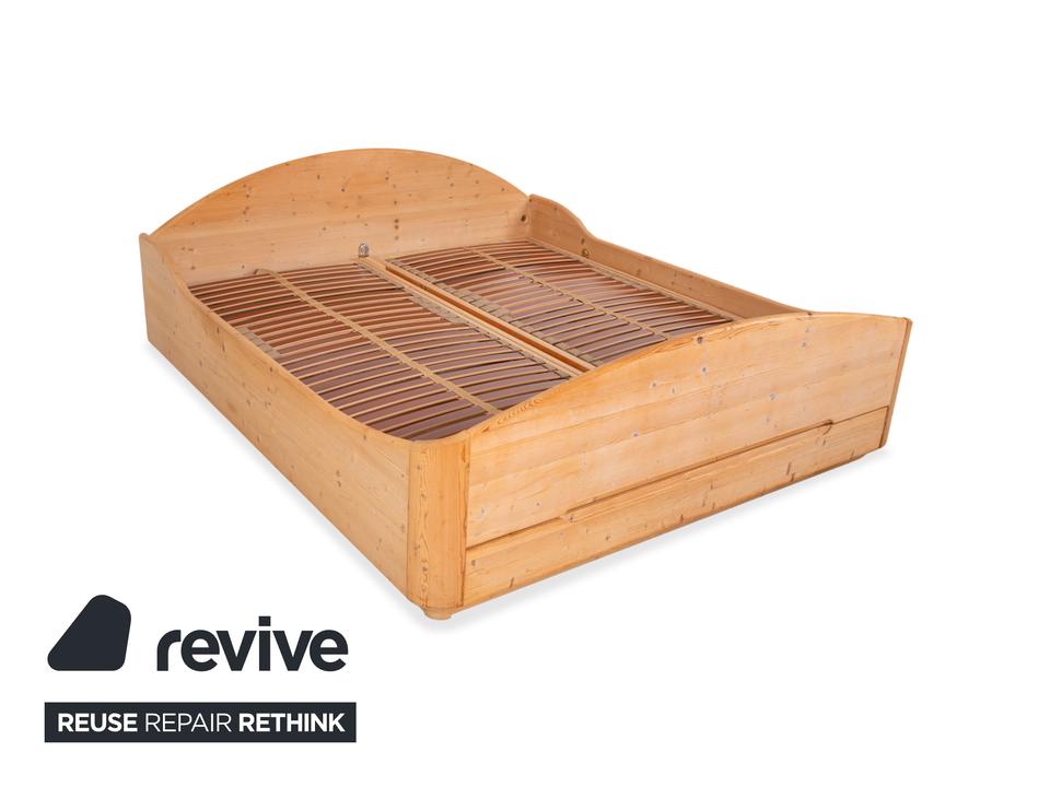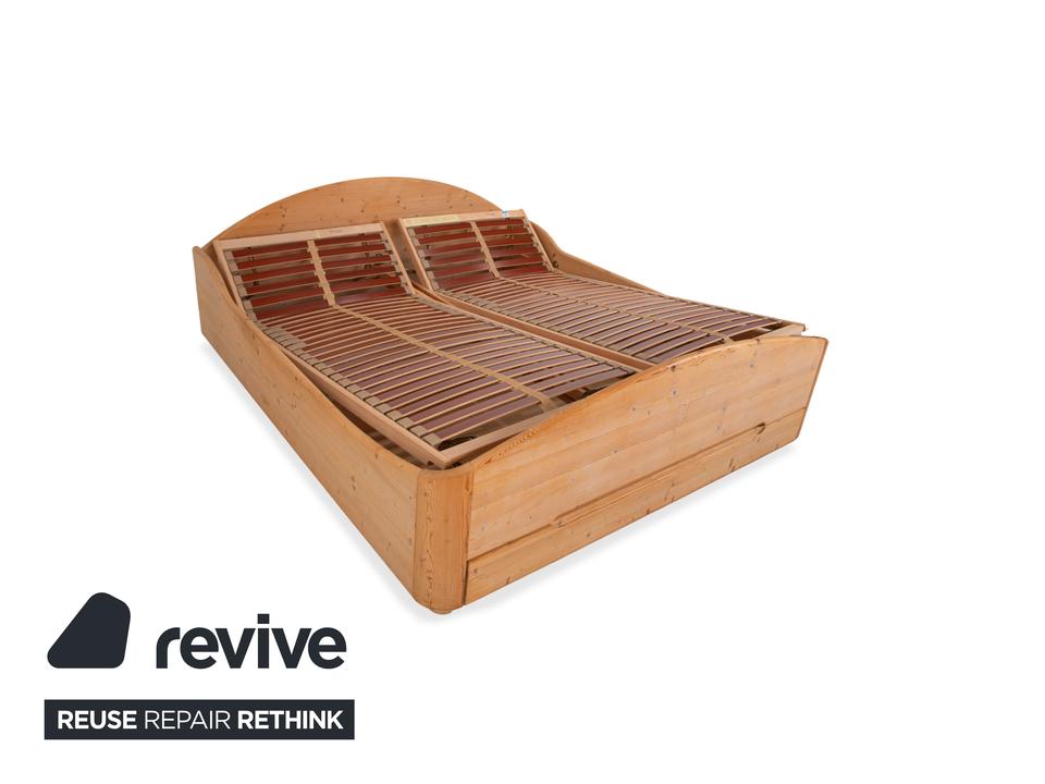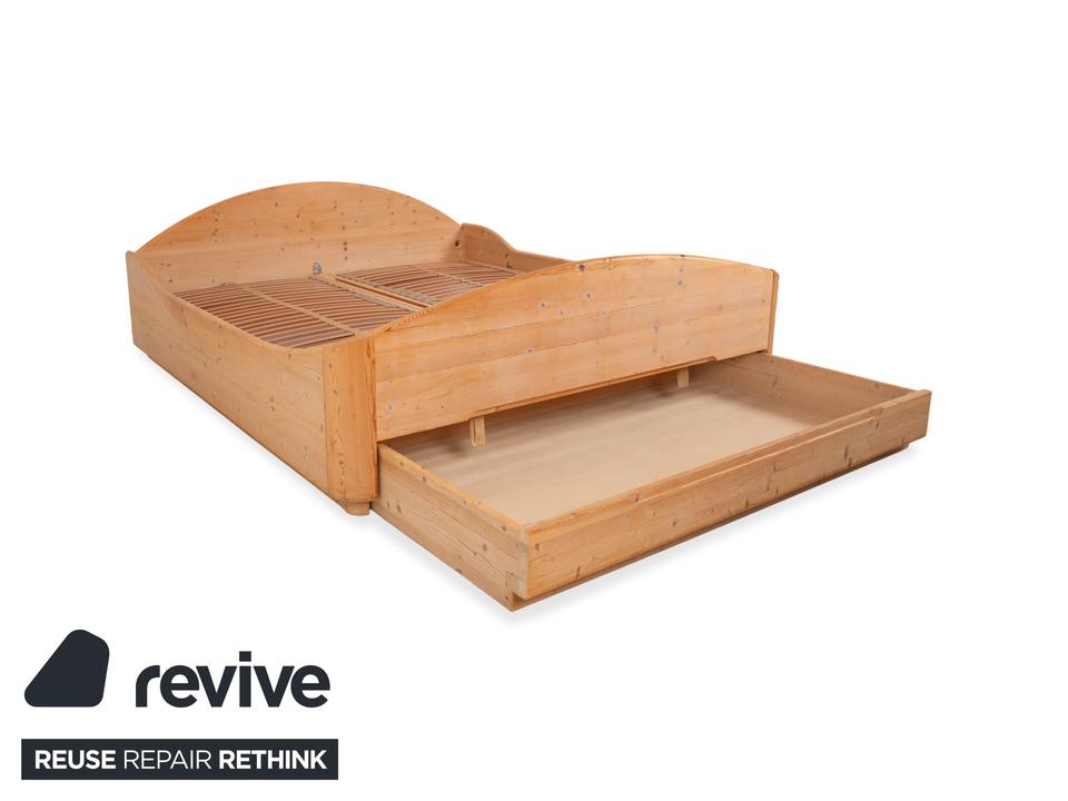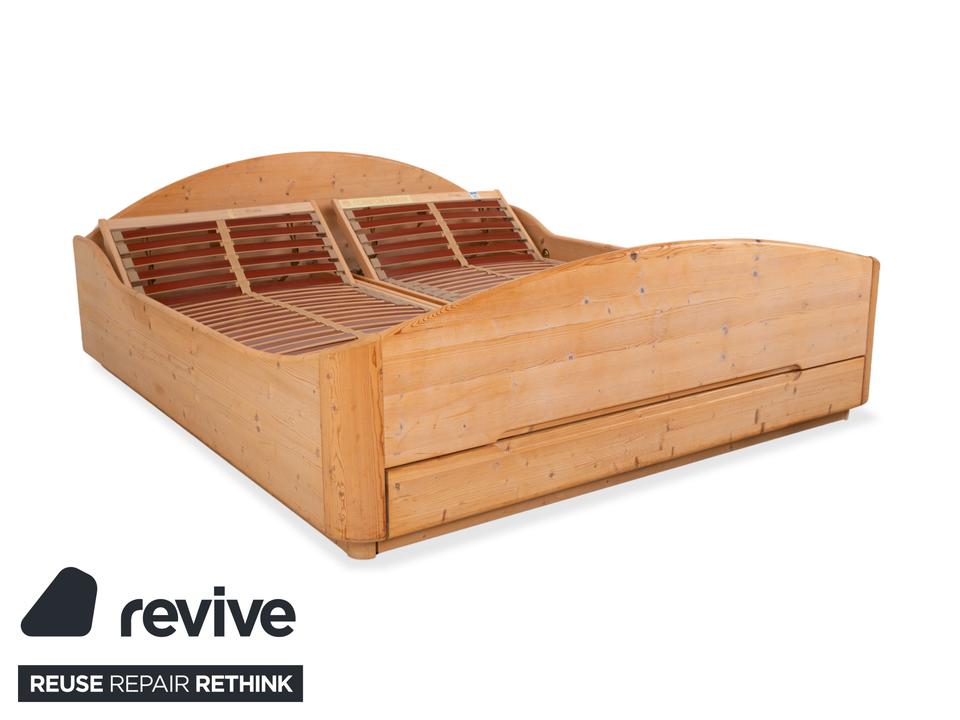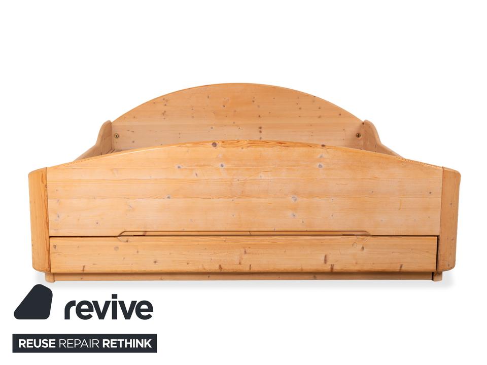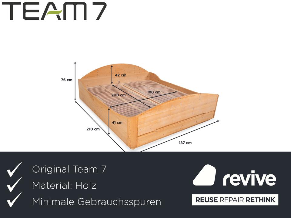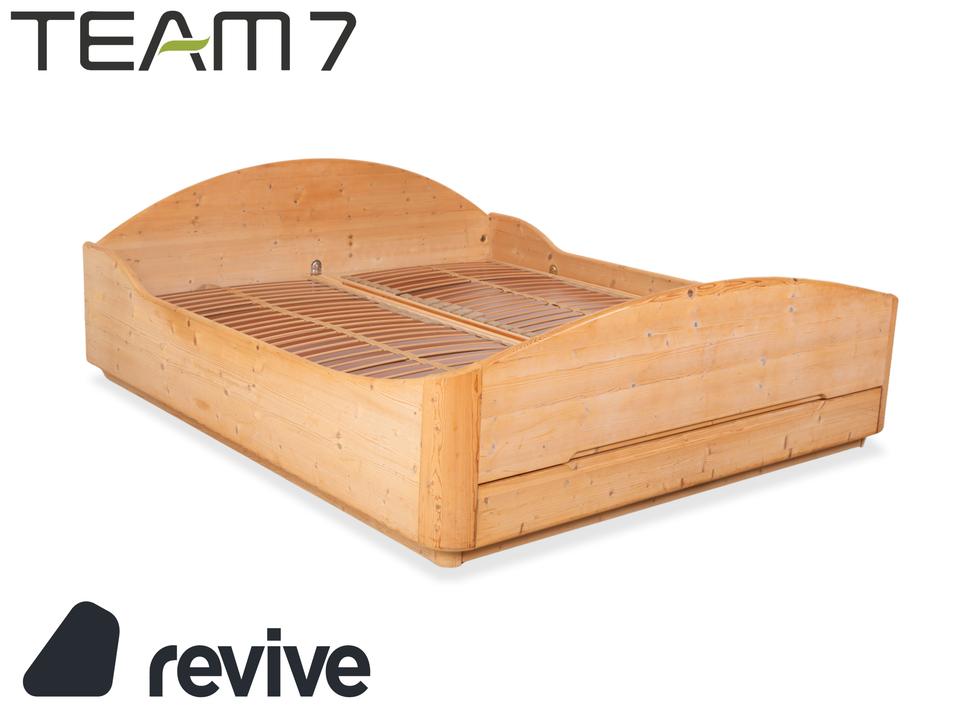 Dieses hochwertige Doppelbett von Team7 überzeugt mit seiner natürlichen Ausstrahlung und einer warmen Brauntonierung, die die feinen Maserungen des Massivholzes wunderschön hervorhebt. Das Design verbindet klare Linien mit sanft geschwungenen Formen – besonders sichtbar am harmonisch gerundeten Kopfteil und dem elegant gewölbten Fußteil. Die charakteristischen Aststrukturen verleihen dem Bett einen authentischen, handwerklichen Charme und unterstreichen den naturbelassenen Look. Ausgestattet mit stabilen Holzlattenrosten bietet das Bett eine solide Basis für erholsamen Schlaf. Mit den großzügigen Maßen von 180×200 cm fügt sich dieses zeitlose Möbelstück perfekt in moderne wie auch traditionelle Schlafzimmer ein und schafft eine warme, beruhigende Atmosphäre. Zudem lässt sich die Schublade manuell ausziehen, sowie die Liegeposition verstellen.