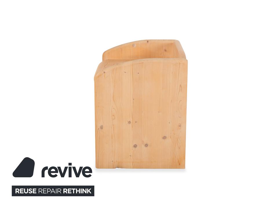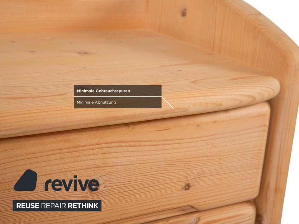 Dieser Nachttisch von Team7 präsentiert sich in einer warmen, natürlichen Braunfärbung, die die charakteristische Maserung des massiven Holzes harmonisch hervorhebt. Mit seinen sanft abgerundeten Kanten und der weich geschwungenen Seitenpartie wirkt das Möbelstück gleichzeitig modern und ursprünglich. Die Oberfläche zeigt deutliche, lebendige Aststrukturen, die dem Nachttisch einen authentischen, handwerklichen Charakter verleihen. Zwei großzügige Schubladen bieten praktischen Stauraum für persönliche Gegenstände und lassen sich dank der integrierten Griffmulden mühelos öffnen. Durch seine kompakte Form und das hochwertige Naturholz fügt sich der Nachttisch sowohl in moderne Schlafzimmer als auch in alpenländisch inspirierte Wohnkonzepte perfekt ein und bringt eine warme, behagliche Atmosphäre in den Raum.