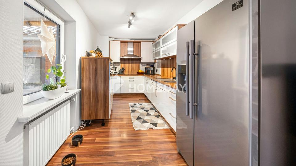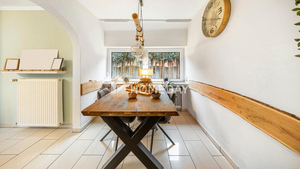 Wohnkomfort und Ausstattung: Der Innenbereich überzeugt durch ein durchdachtes und helles Ambiente. Gepflegte Fliesen und warmes Laminat führen Sie durch die Räume und schaffen eine behagliche Basis für Ihr Familienleben. Das Herzstück für kulinarische Erlebnisse ist die bereits vorhandene, hochwertige Küche. Sie ist mehr als nur ein Funktionsraum; sie ist der Ort, an dem der Tag bei einem gemeinsamen Frühstück beginnt und bei einem Glas Wein endet.