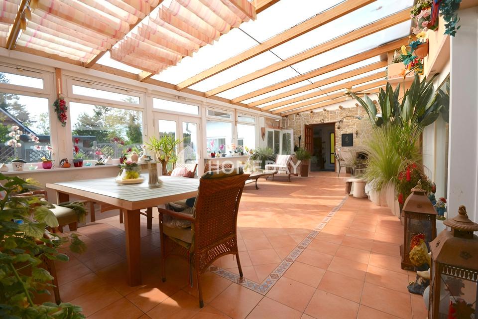 Im Erdgeschoss empfängt Sie ein großzügiges Wohnzimmer mit behaglichem Kamin und großen Fensterflächen, die für eine angenehme Lichtatmosphäre sorgen. Ergänzt wird dieser Bereich durch ein separates Esszimmer sowie eine moderne, großzügig geschnittene Küche. Von hier aus gelangen Sie sowohl in einen praktischen Abstellraum mit direktem Gartenzugang als auch in den einladenden Wintergarten, der zu entspannten Stunden mit Blick ins Grüne einlädt.