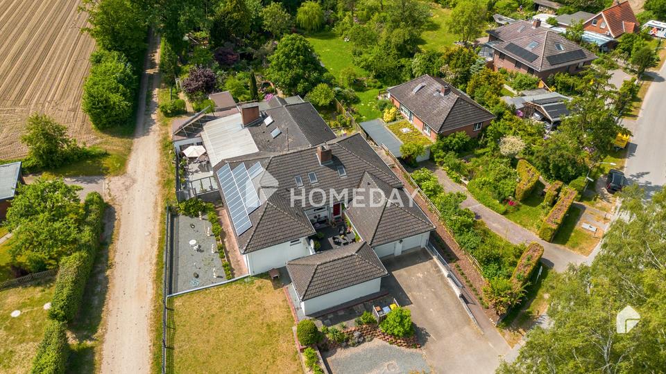 Das im Jahr 1975 errichtete Anwesen befindet sich auf einem weitläufigen Grundstück von rund 2.337 m² und vereint naturnahes Wohnen mit einer hervorragenden Lage: Hamburg erreichen Sie in etwa 40 Kilometern, Lübeck bereits nach rund 10 Kilometern.