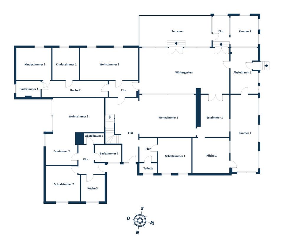 Ein separater Bereich im Erdgeschoss – der sogenannte „Kinderanbau“ – verfügt über vier zusätzliche Zimmer, ein Duschbad sowie eine eigene Küche. Dieser Teil des Hauses eignet sich hervorragend für größere Familien, Gäste oder eine flexible Nutzung.