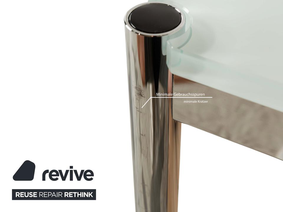 Revive GmbH | Gebrauchte Designermöbel • Aufbereitet • Nachhaltig • Sofort Verfügbar Der USM Haller Couchtisch ist ein sehr schlichtes aber dennoch stilvolles Möbelstück. Das helle Erscheinungsbild geprägt von der blauen Glasplatte und dem silber…