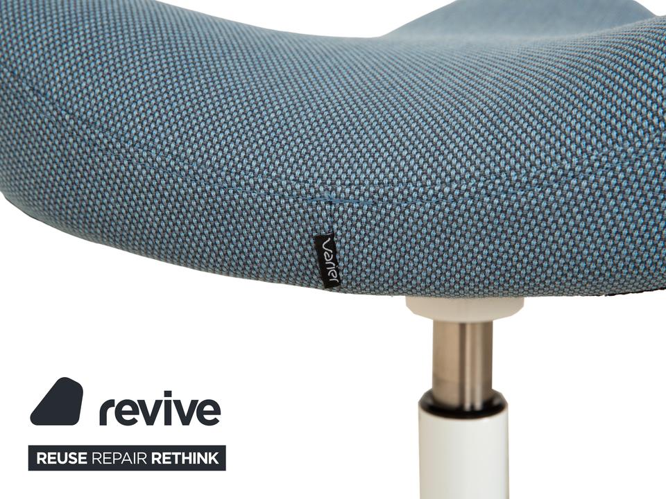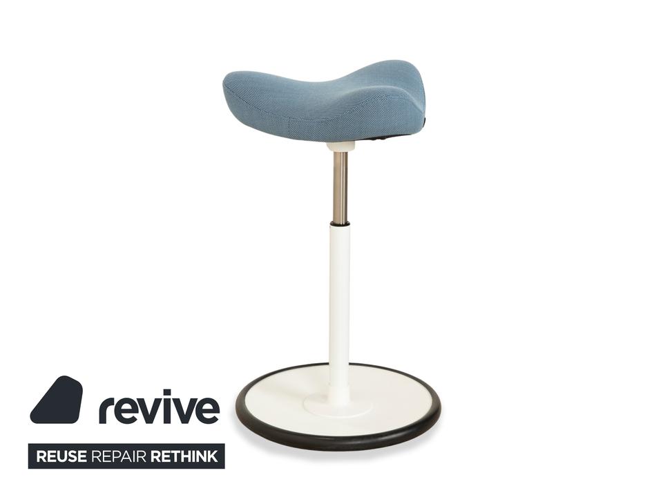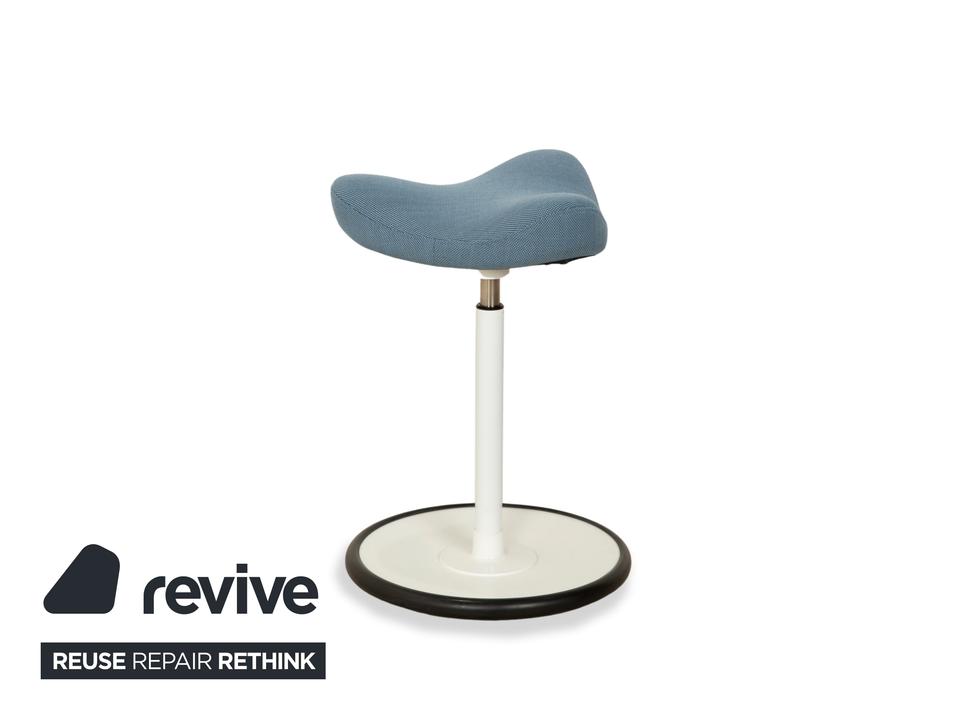 Varier Move Sitz-Steh Hocker Stuhl Stoff Blau Basis Weiß Holz