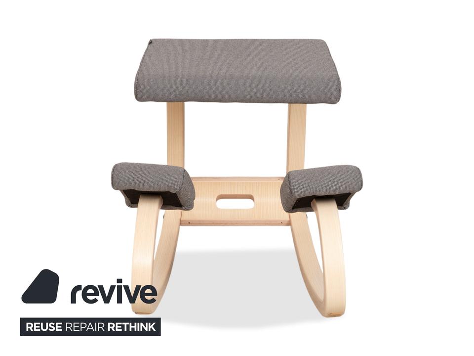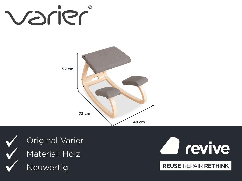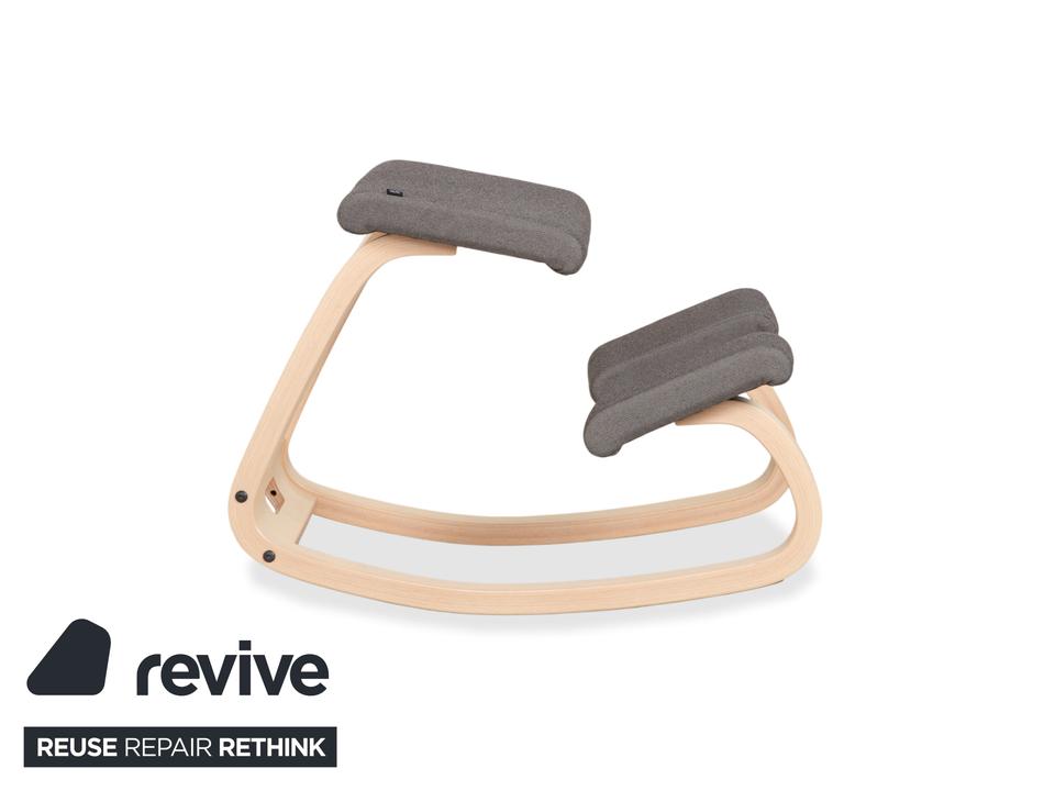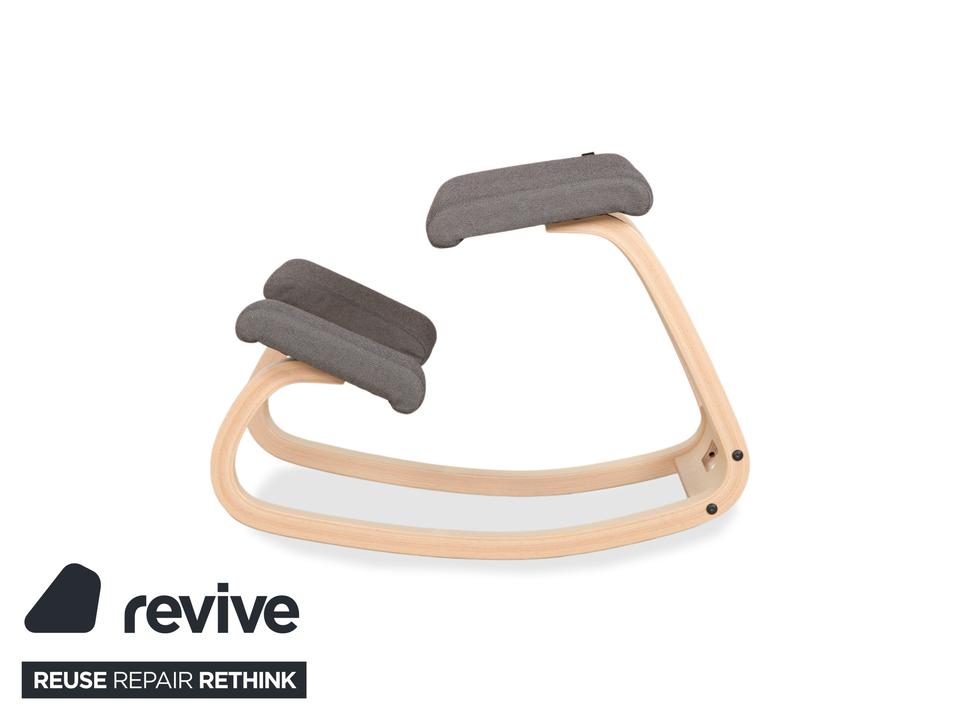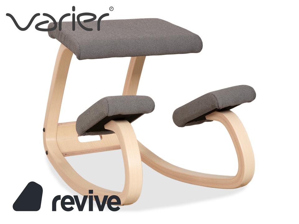 Mit dem „Variable“ von Varier (ehemals Stokke) holst du dir den absoluten Klassiker des ergonomischen Sitzens in dein Zuhause. Dieser Kniestuhl ist eine Ikone des skandinavischen Designs und wurde entworfen, um Bewegung und gesundes Sitzen zu fördern.Die Kombination der Materialien wirkt hier besonders frisch und freundlich: Das Gestell besteht aus hellem Eschenholz in Natur, dessen sanfte Maserung schön sichtbar ist und Wärme ausstrahlt. Kontrastiert wird das helle Holz von Polstern in einem dunklen Grau (Revive 164). Das geniale Konstruktionsprinzip mit den gebogenen Kufen erlaubt sanfte Schaukelbewegungen, während die Schienbeinpolster verhindern, dass du nach vorne rutschst. Durch den offenen Sitzwinkel richtet sich deine Wirbelsäule fast automatisch auf, was den Rücken entlastet und die Atmung vertieft. Ein Möbelstück, das nicht nur gut aussieht, sondern dir aktiv guttut.