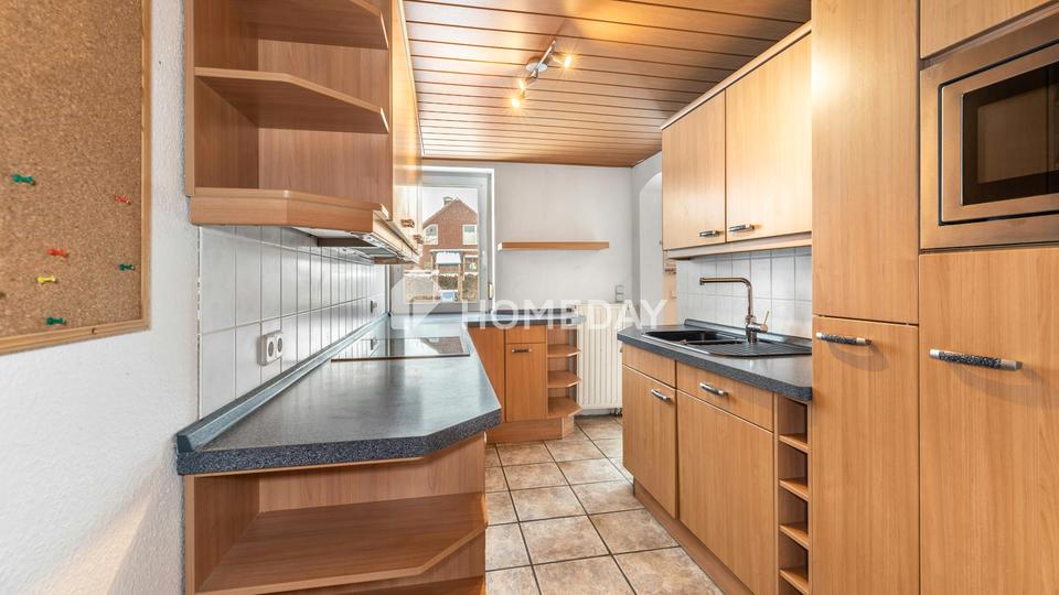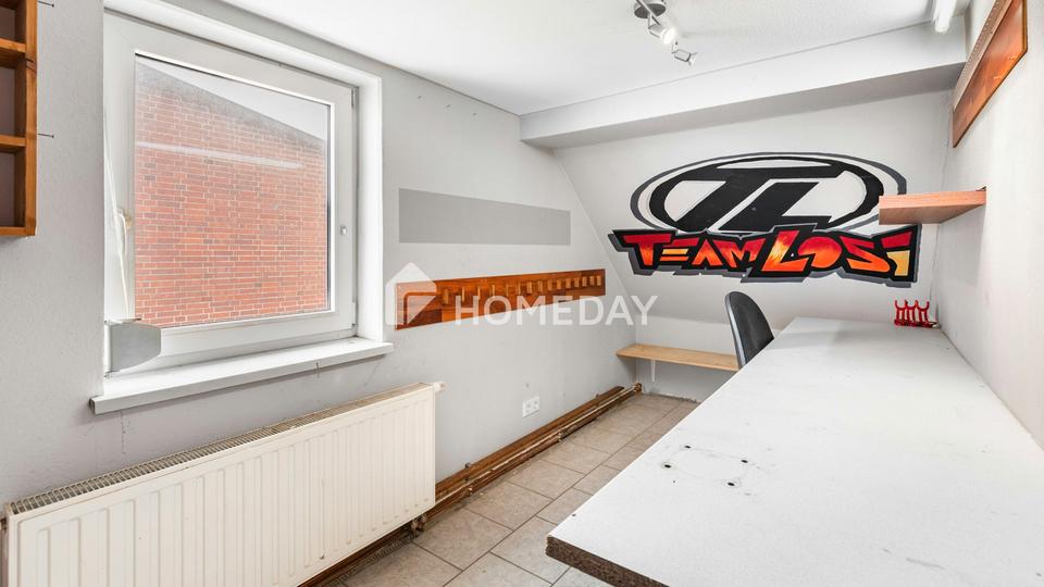 Das Obergeschoss bietet Platz für die ganze Familie. Mehrere Zimmer stehen hier zur Verfügung und eignen sich ideal als Kinder-, Schlaf- oder Arbeitszimmer. Die Räume wirken hell und freundlich, teils mit Dachschrägen, die dem Haus seinen ganz eigenen Charme verleihen. Ein weiteres Tageslichtbad, bereits renoviert und mit Dusche ausgestattet, sorgt für zusätzlichen Komfort. Praktische Abstellflächen sowie ein separater Heizungsraum runden das Raumangebot ab.