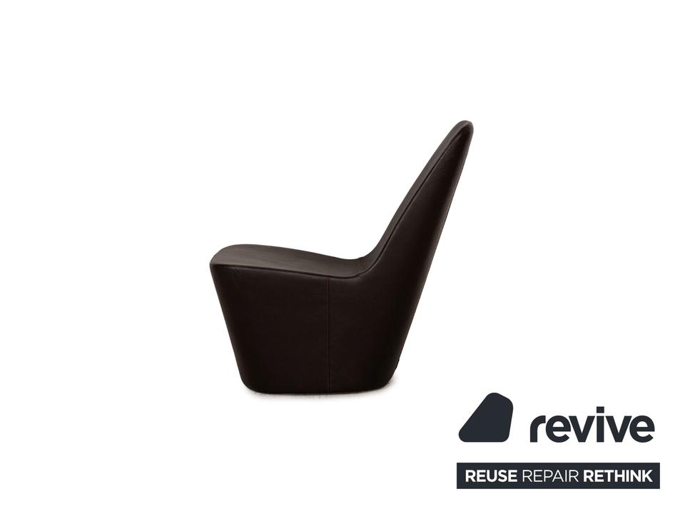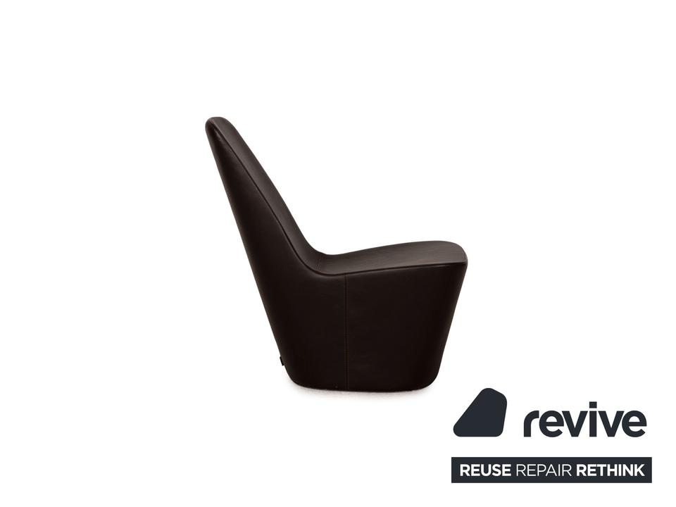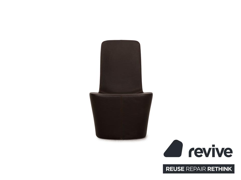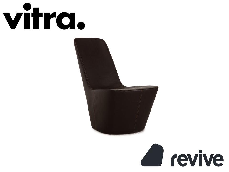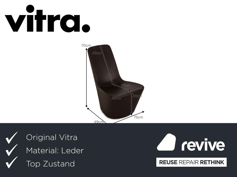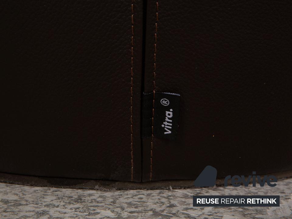 Der Monopod Sessel von Vitra ist mit einem dunkelbraunen Echtleder bezogen und ist bodentief. Das minimalistische, schlichte Design zeichnet ihn aus.