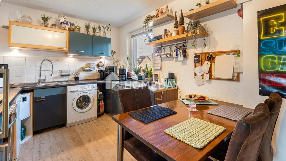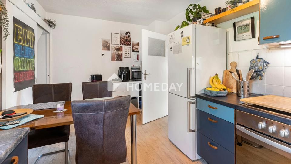 Die Küche ist großzügig bemessen und bietet ausreichend Platz für einen Essbereich. Hier lässt sich das tägliche Familienleben entspannt gestalten. Das Tageslichtbad ist mit einer Badewanne ausgestattet und bietet durch das Fenster angenehme Belichtung und Belüftung.