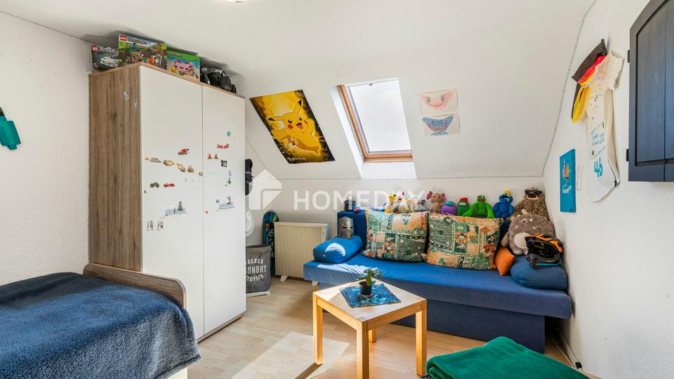 Bei den Fenstern handelt es sich um eine Mischung aus wärmedämmenden Holz- und Kunststoffrahmen mit Zweifach-Verglasung. Zwischen 2010 und 2024 wurden die Fenster schrittweise erneuert – darunter auch die Dachgaubenfenster – und durch wärmeisolierte, doppeltverglaste Kunststofffenster ersetzt. Die Wohnräume sind mit Fliesen und pflegeleichtem Laminatboden ausgestattet – funktional und langlebig zugleich.