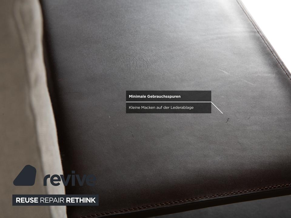 Eine Besonderheit ist die integrierte Ablagefläche : Seitlich der linken Sitzfläche angesetzt, bildet das Leder einen spannenden Kontrast zum Stoffbezug. Sie eignet sich als praktische Abstellfläche für Bücher, Gläser oder Dekoration und unterstreicht den luxuriösen Charakter des Sofas.