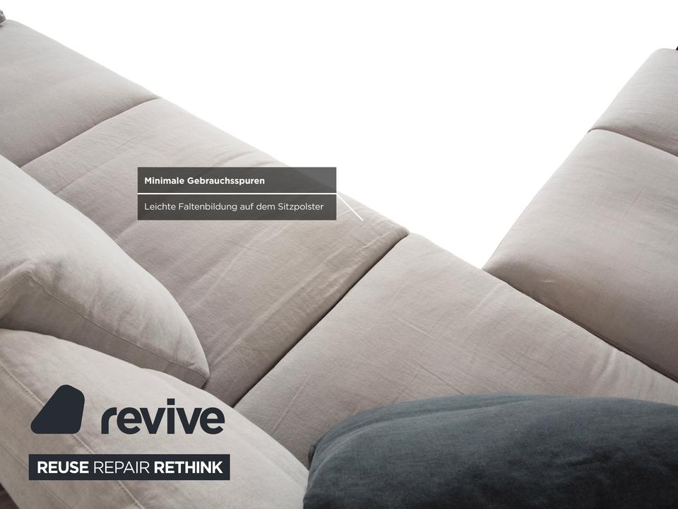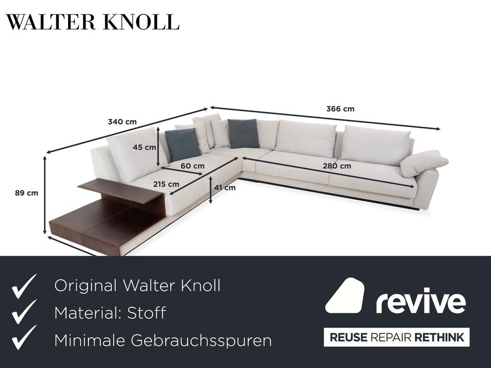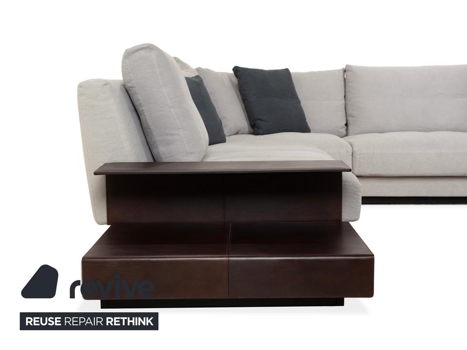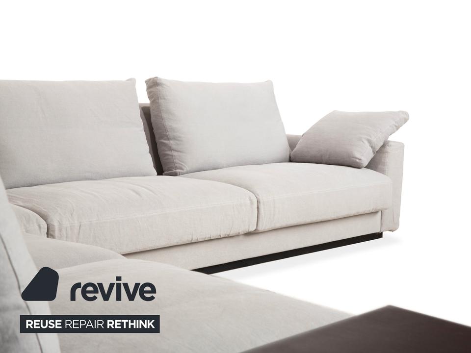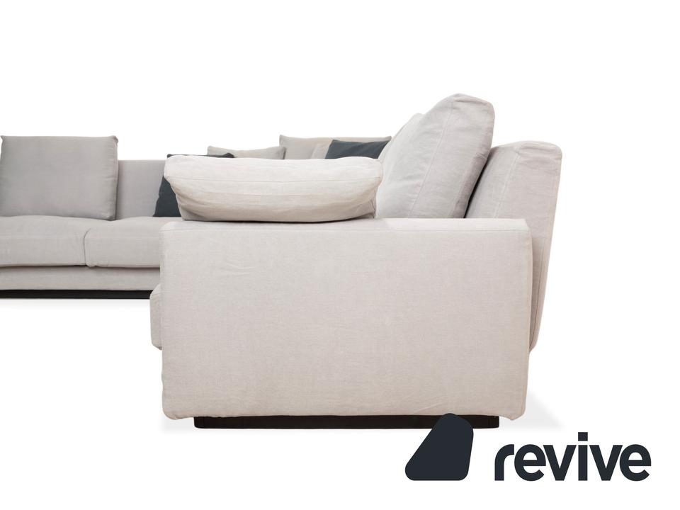 Das Walter Knoll Grand Suite Ecksofa ist ein Sitzmöbel mit sehr großzügigen Proportionen und klarer Linienführung. Die Polsterung in hellem grauen Stoff verleiht dem Sofa eine freundliche, moderne Ausstrahlung.