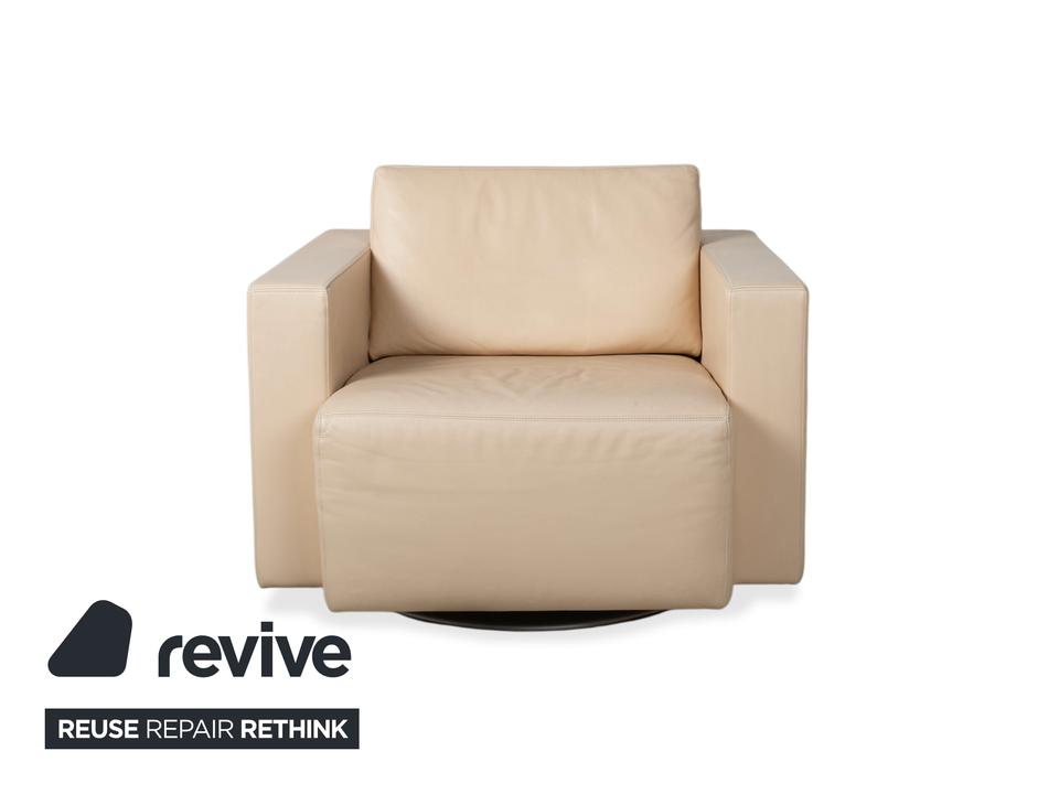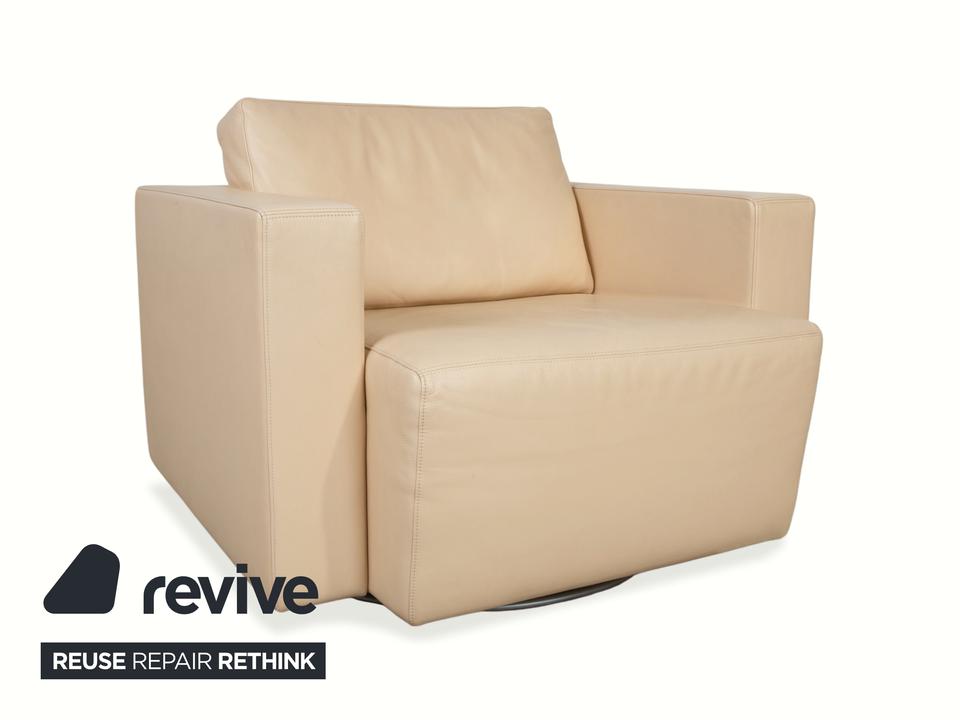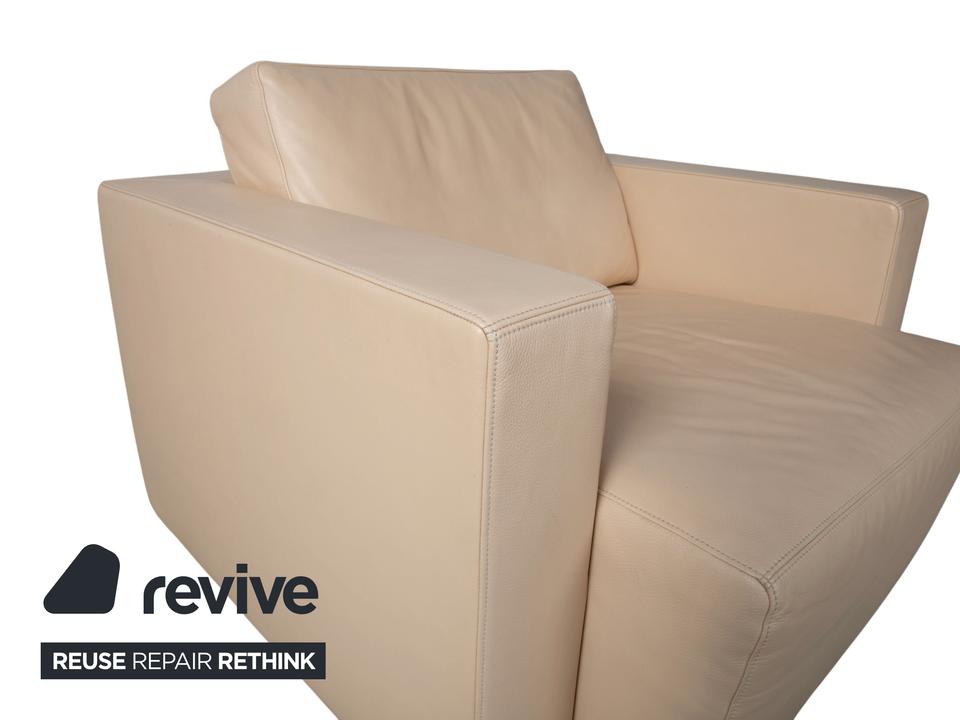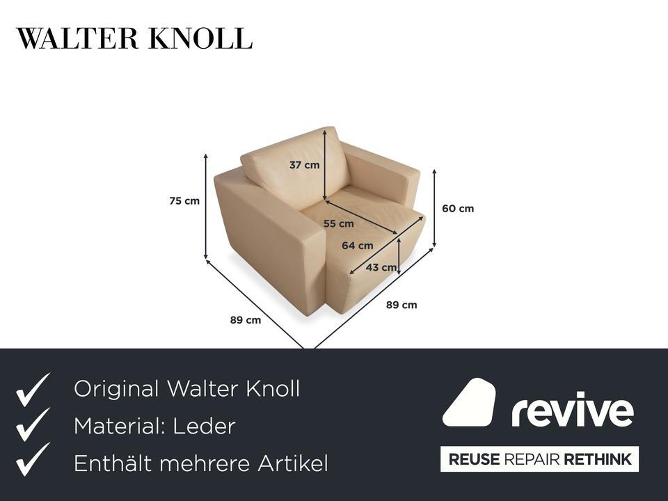 Dieses Duo besteht aus zwei Nelson Sesseln von Walter Knoll. Das Design des Walter Knoll Nelson Sessels lebt von seiner klaren, kubischen Formsprache, die in diesem creme-beigen Leder besonders gut zur Geltung kommt. Uns fasziniert vor allem, wie die breiten Armlehnen und der tiefe Korpus eine massive Präsenz ausstrahlen, ohne dabei schwerfällig zu wirken. Es ist ein echtes Statement-Piece für dein Wohnzimmer, das durch die hochwertige Verarbeitung der deutschen Manufaktur Walter Knoll einfach gut aussieht und auch in vielen Jahren noch modern bleibt.Die Kombination aus der hellen Farbe und dem robusten Material sorgt dafür, dass sich der Sessel mühelos in verschiedene Einrichtungsstile einfügt. Hier bekommst du ein zeitloses Herzstück, das Designanspruch mit absoluter Alltagstauglichkeit verbindet und deinem Raum sofort eine aufgeräumte Ästhetik verleiht.
