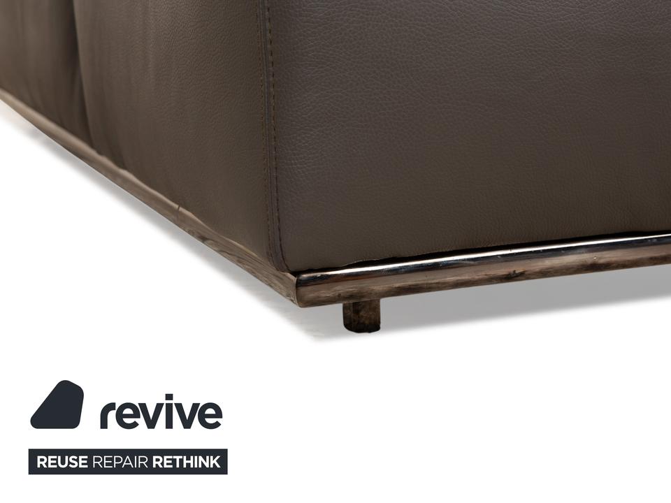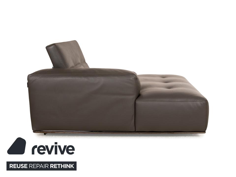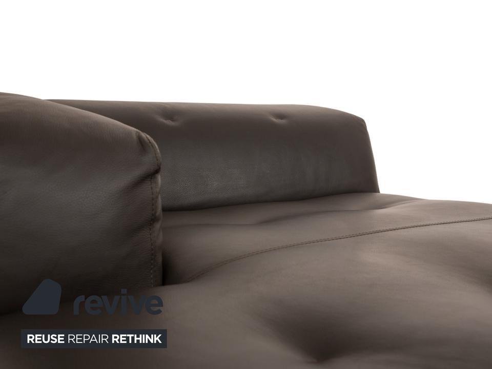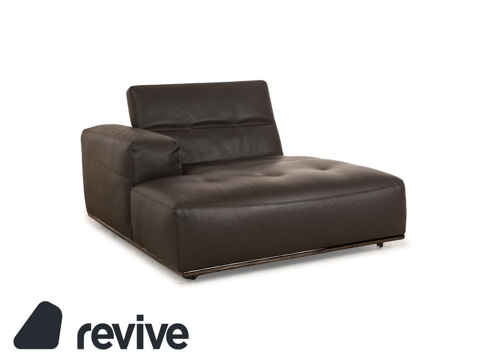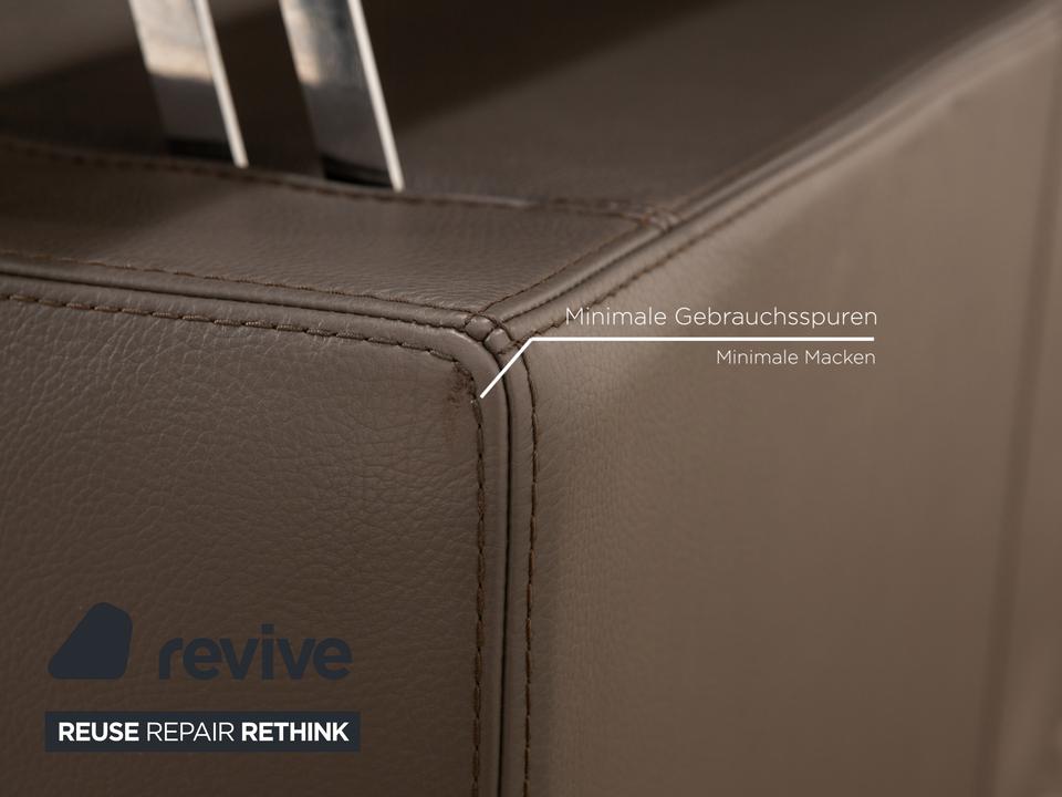 Die Liege von Who’s Perfect ist mit einem braunen Echtleder bezogen und steht auf unauffälligen Füßen. Sie zeichnet sich durch das gradlinige, kompakte Design und die minimalistische Optik aus. Die Kopfstütze ist klappbar.