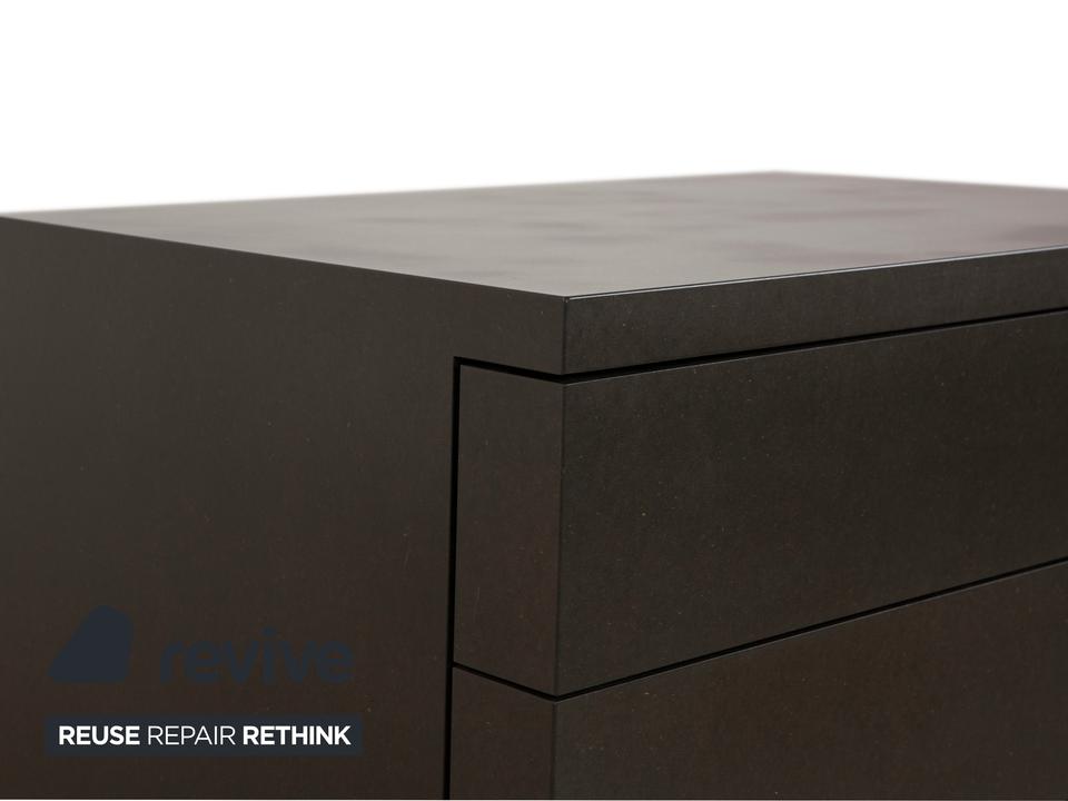 Dieses Sideboard aus dem Hause Wilkhahn ist ein Musterbeispiel für klares, reduziertes Design. Die Oberfläche in dunklem Anthrazit bis Schwarz wirkt absolut zeitlos und fügt sich nahtlos in moderne Büros oder Home-Office-Bereiche ein. Ohne sichtbare Griffe wirkt die Front wie eine ruhige, einheitliche Fläche – pure Eleganz, die keine Ablenkung duldet.Die vier geräumigen Schubladen bieten nicht nur viel Stauraum für den täglichen Bedarf. So verbindet Wilkhahn maximale Stabilität und Funktion mit hochwertigem Design.