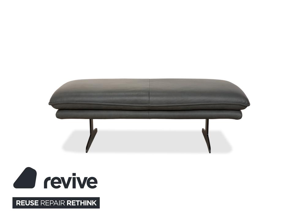 Willi Schillig Broadway Hocker: Die schwebende Relax-InselDieser Hocker ist das fehlende Puzzleteil zur Vollendung deiner Broadway-Lounge. Er greift die Designsprache des Sofas eins zu eins auf und überzeugt durch dieselbe moderne Leichtigkeit.Der Bezug aus hochwertigem Leder in Anthrazit (Dunkelgrau) wirkt edel und zeitlos. Besonders auffällig ist die Polsterung: Die Sitzfläche ist wie ein separates, weiches Kissen gestaltet, das auf dem Korpus aufliegt und sofort Gemütlichkeit signalisiert. Getragen wird das Möbelstück von den charakteristischen schwarzen Metallkufen: Sie heben den großen Hocker vom Boden ab und lassen ihn – genau wie das Sofa – optisch schweben.Dank seiner großzügigen, rechteckigen Form ist er extrem vielseitig. Schiebe ihn an das Sofa, um eine riesige Liegewiese zu kreieren, oder nutze ihn frei im Raum als zusätzliche Sitzgelegenheit für Gäste.