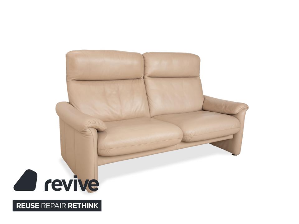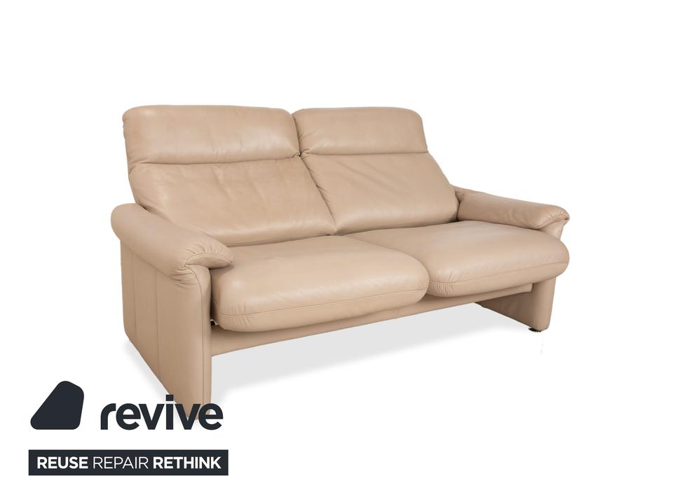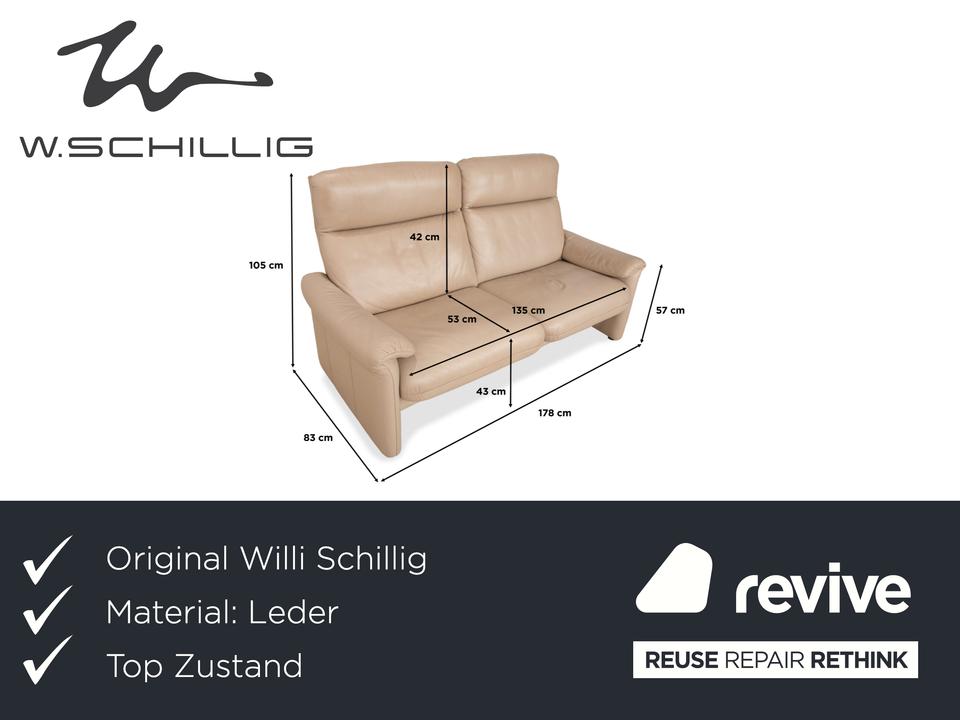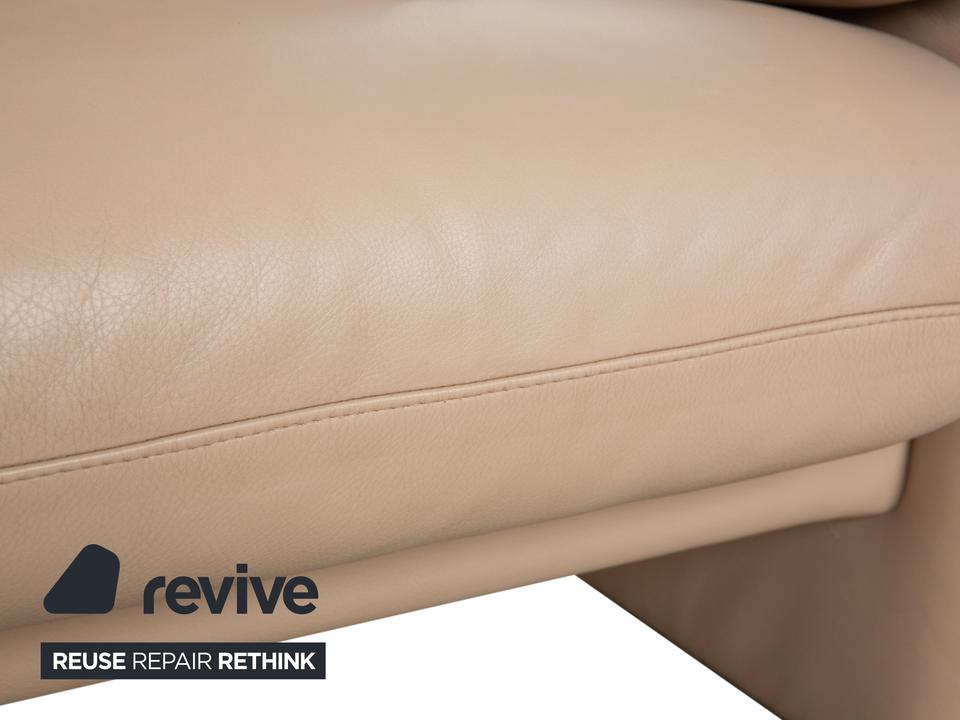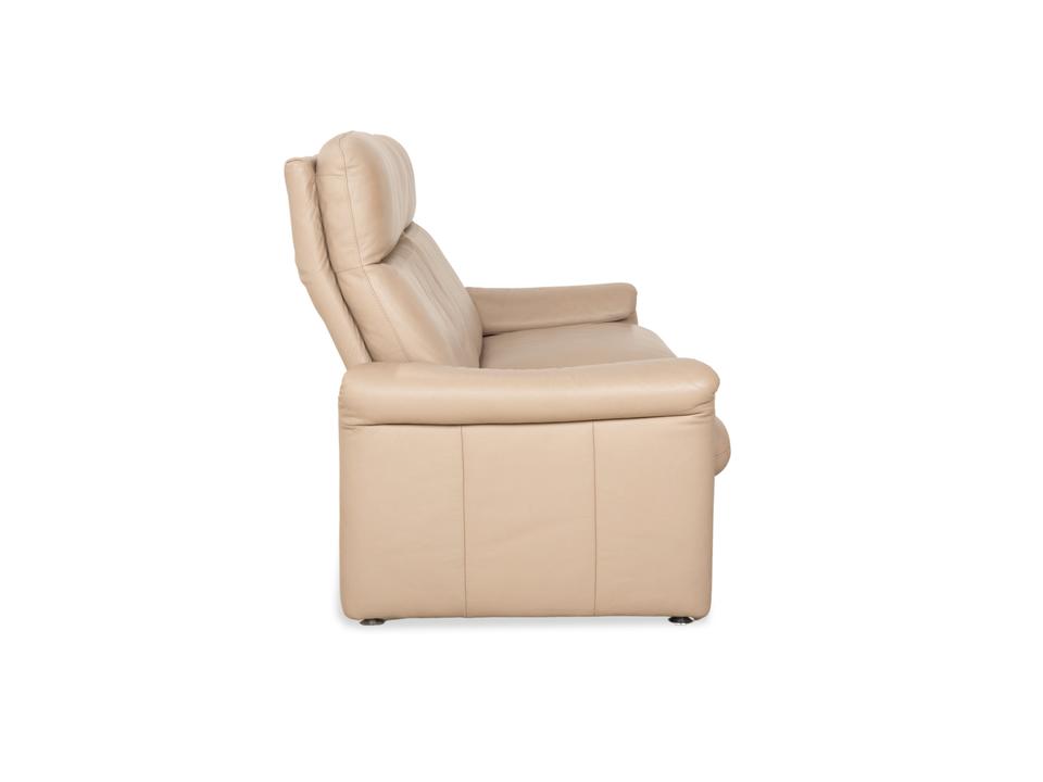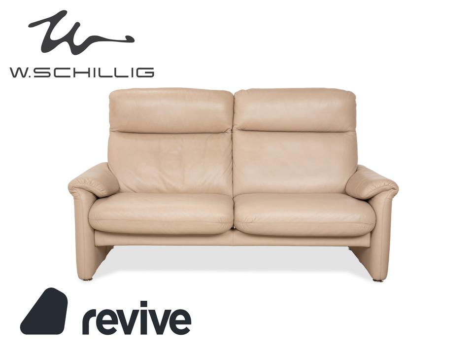 Das Sofa Ergoline Zweisitzer Sofa von Willi Schillig ist mit beigem Leder bezogen und steht auf bodentiefen Seitenteilen. Der Zweisitzer zeichnet sich duch sein klassisches Design und hohen Komfort aus – verstellbare Kopfstützen und Rückenlehnen erlauben verschiedene Sitzpositionen.