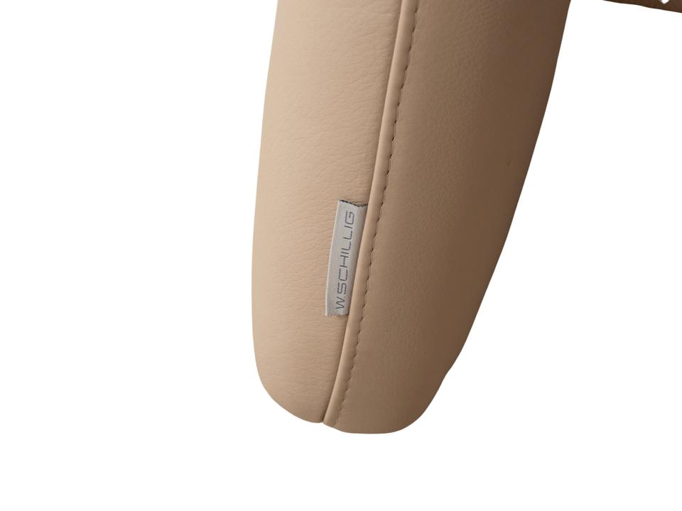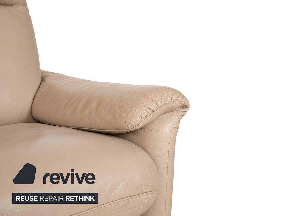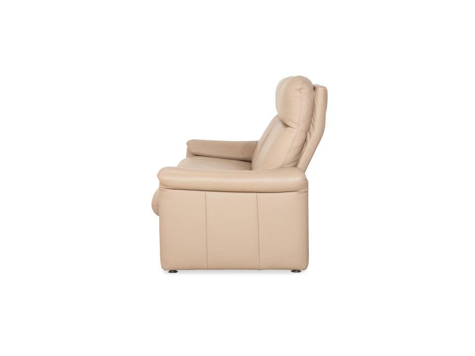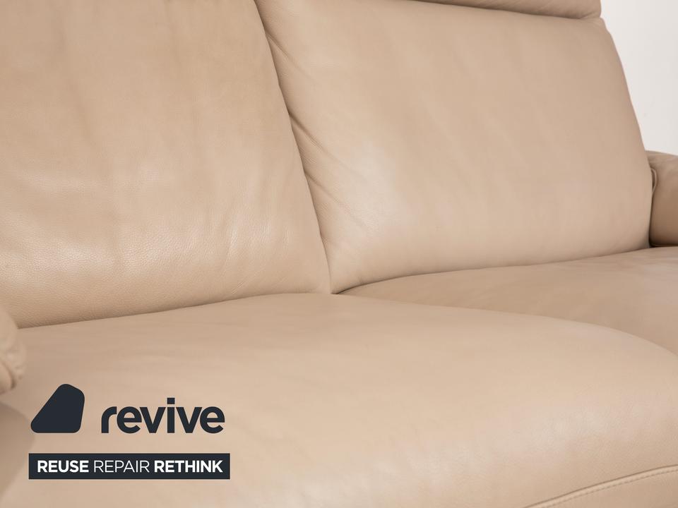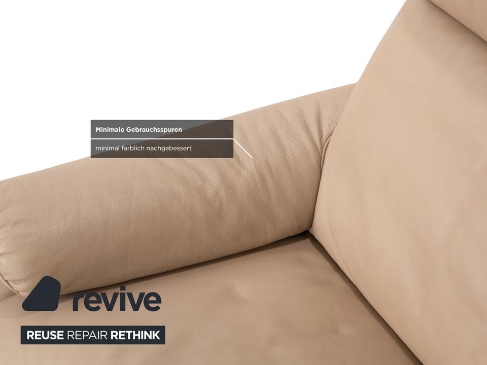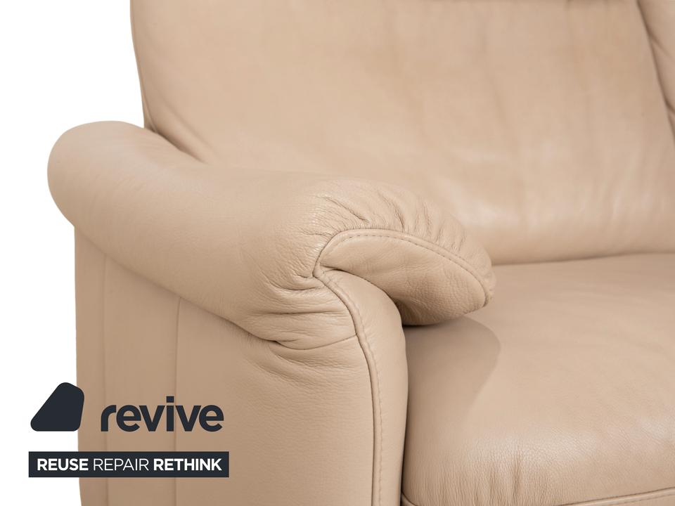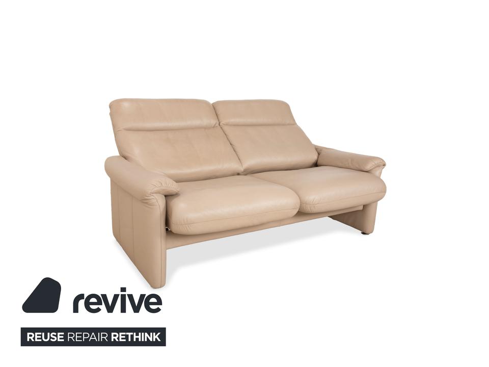 Das Sofa Ergoline Zweisitzer Sofa von Willi Schillig ist mit beigem Leder bezogen und steht auf bodentiefen Seitenteilen. Der Zweisitzer zeichnet sich duch sein klassisches Design und hohen Komfort aus – verstellbare Kopfstützen und Rückenlehnen erlauben verschiedene Sitzpositionen.