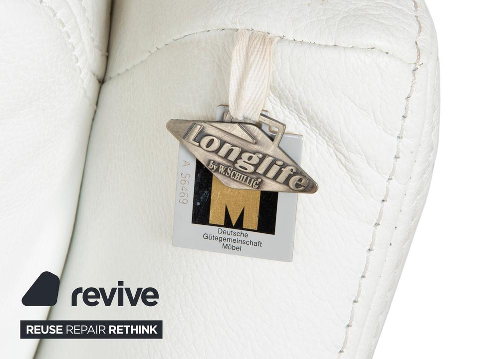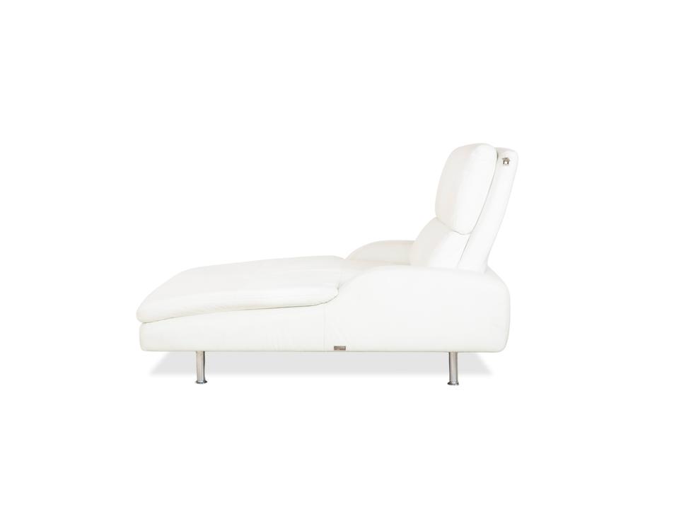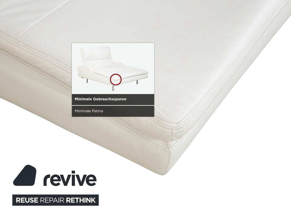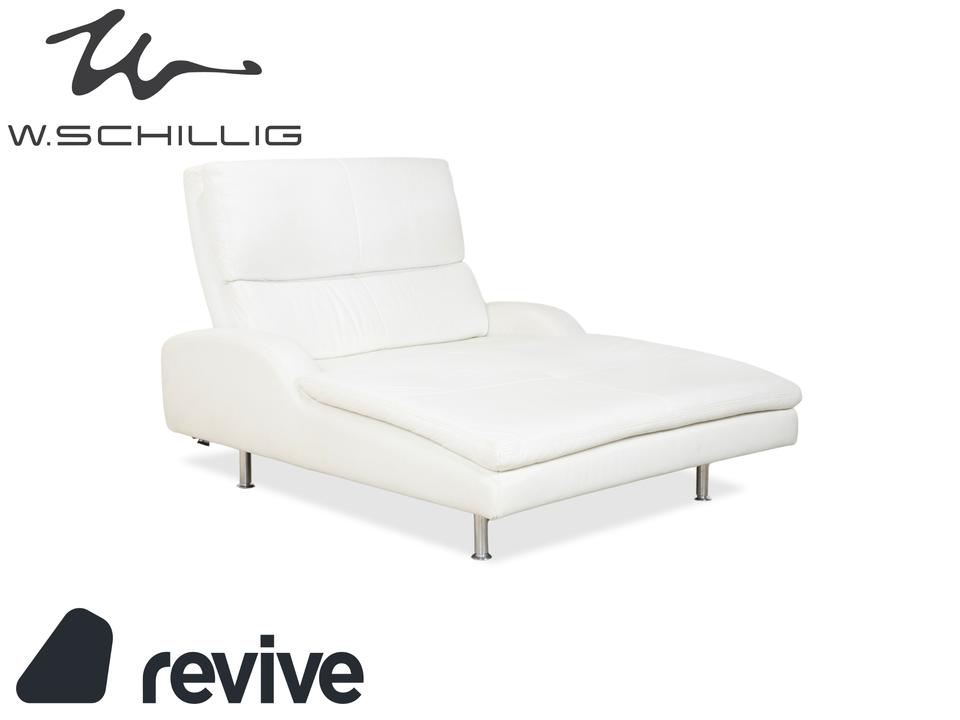 Diese Liege von Willi Schillig ist im Grunde weniger ein einfaches Möbelstück als vielmehr deine persönliche Entspannungsinsel. Anders als bei schmalen Recamieren hast du hier eine richtig großzügige Breite, auf der du dich nicht nur gerade hinlegen, sondern auch mal quer ausstrecken oder die Beine anziehen kannst – Platzmangel ist hier definitiv kein Thema.Das cremeweiße Leder wirkt sehr frisch und hellt den Raum optisch auf, ohne dabei steril zu wirken; es hat diese typische, einladende Haptik, für die Schillig bekannt ist. Die Liege steht auf schlanken Metallfüßen, was dem doch recht voluminösen Polster eine angenehme Leichtigkeit gibt und sie nicht so wuchtig wirken lässt. Auch die seitlichen Lehnen und der Rücken sind schön soft ausgearbeitet, sodass du eigentlich keine extra Kissen brauchst, um es bequem zu haben. Perfekt, um mal kurz die Augen zuzumachen oder entspannt ein Buch zu lesen.