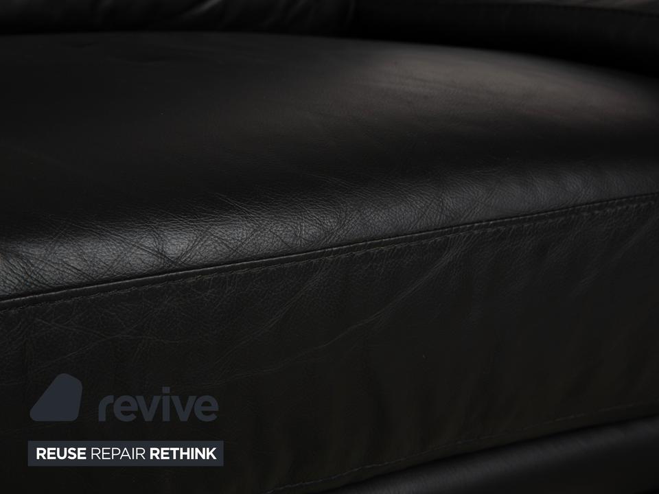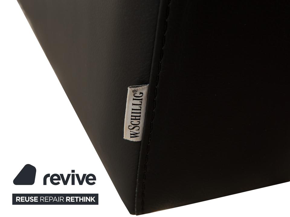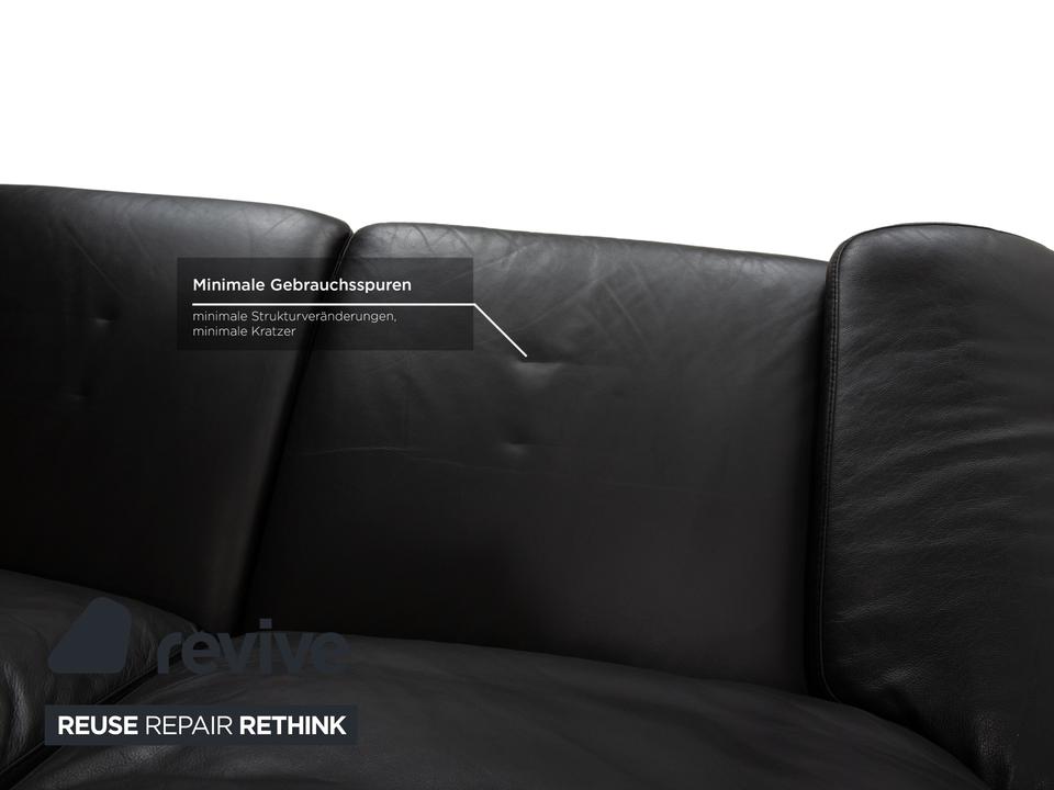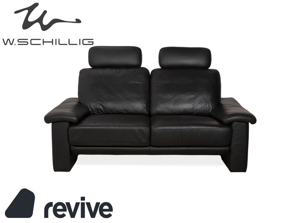 Das Sofa in klassischem Design aus dem Hause Ewald Schillig ist mit schwarzem Leder bezogen und bietet eine verstellbare Rückenlehnenposition. Das hochwertige Leder sorgt für Komfort und Langlebigkeit.