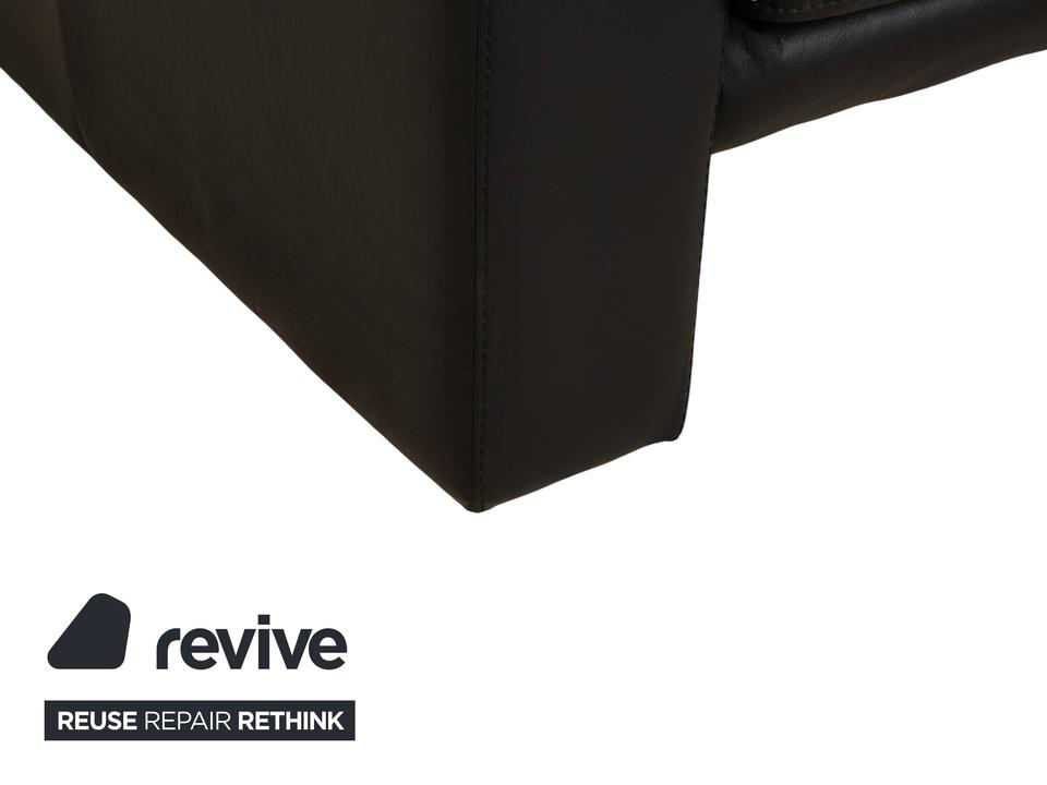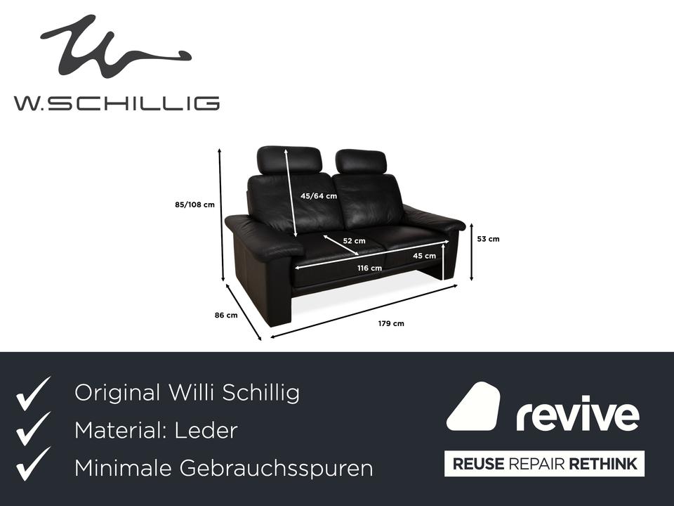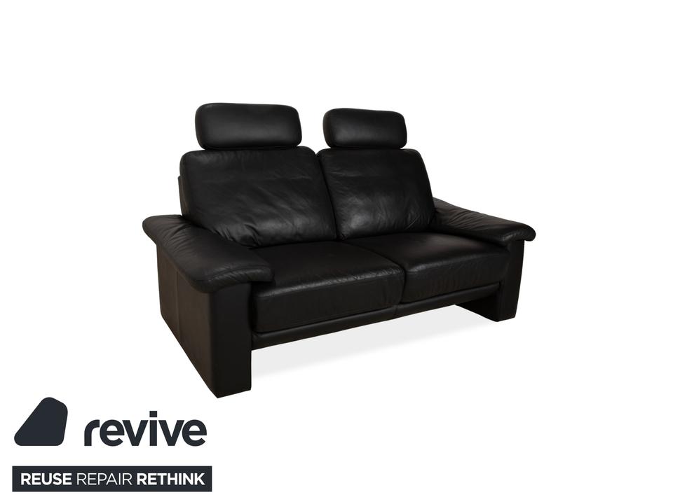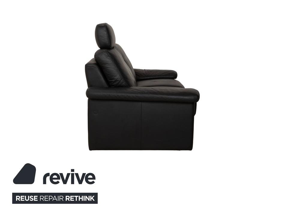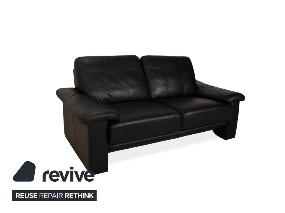 Das Sofa in klassischem Design aus dem Hause Ewald Schillig ist mit schwarzem Leder bezogen und bietet eine verstellbare Rückenlehnenposition. Das hochwertige Leder sorgt für Komfort und Langlebigkeit.