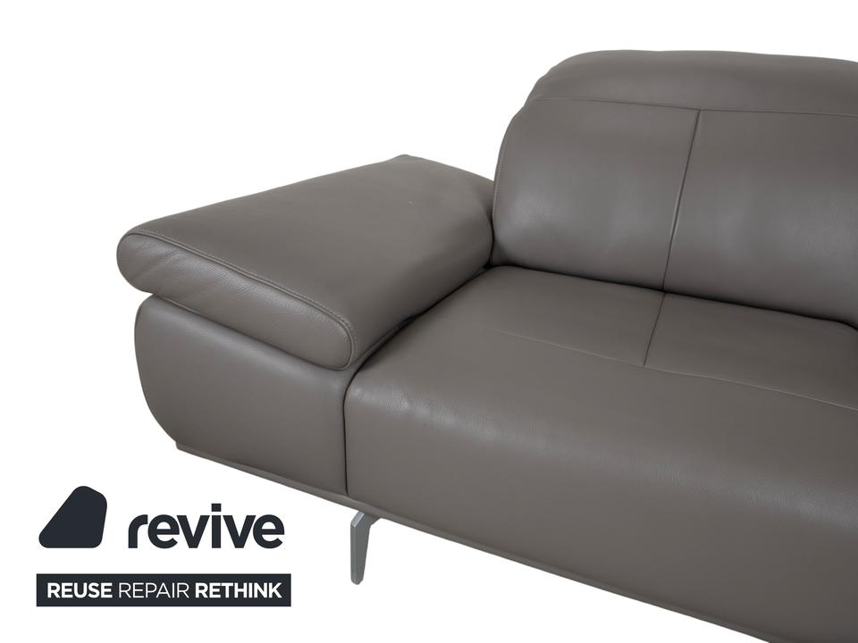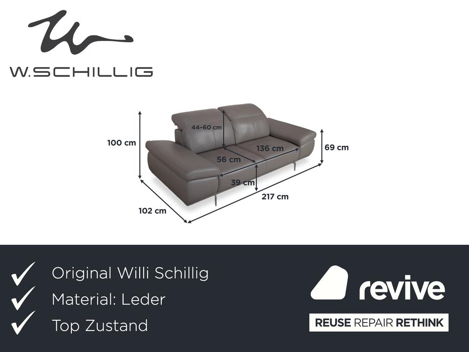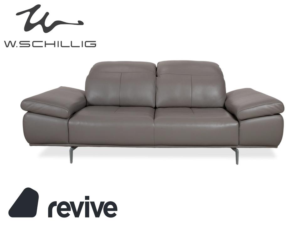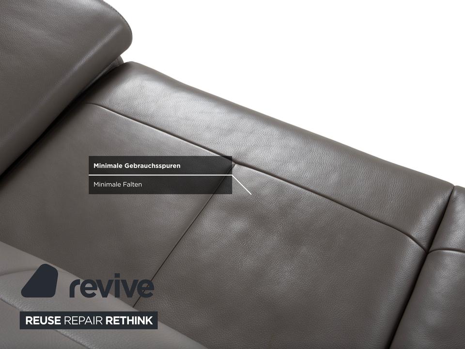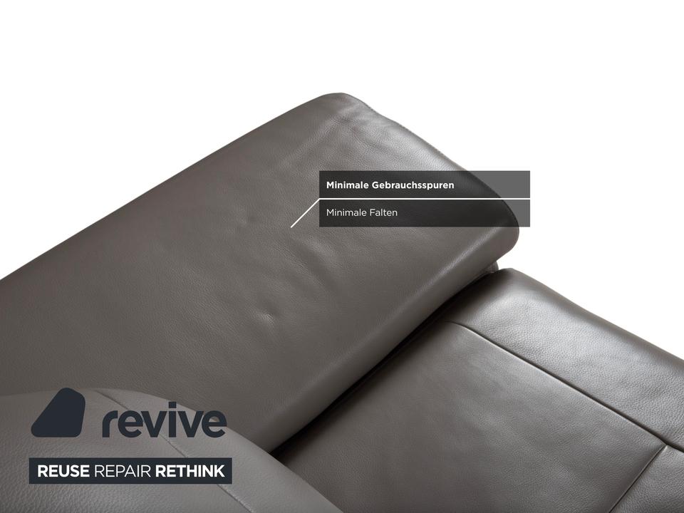 Das Willi Schillig Levi Sofa ist ein Paradebeispiel für modernes, bodenfreies Design, das Leichtigkeit und Komfort perfekt vereint. In der Farbe Elephant Gray (Leder Z77/25) präsentiert sich dieser Zweisitzer in einem edlen, warmen Grauton, der je nach Lichteinfall sehr nuanciert wirkt. Die Kombination aus der klaren Linienführung und den filigranen Metallfüßen verleiht dem Sofa eine fast schwebende Optik.W.Schillig ist bekannt für exzellente Lederqualität, und das Z77-Leder zeichnet sich durch seine angenehme Griffigkeit und Langlebigkeit aus. Die markanten Einzüge in der Sitzfläche geben dem Levi seinen charakteristischen Look und verhindern gleichzeitig eine übermäßige Wellenbildung des Leders.Das Modell Levi verfügt über eine manuelle Funktionsvielfalt, die das Sitzerlebnis individualisiert. Bei dieser Serie lassen sich die Seitenteile (Armlehnen) über einen Rasterbeschlag mehrstufig verstellen – von einer flachen Liegeposition bis hin zur steilen Stütze. Zudem sind die Kopfstützen manuell in der Neigung anpassbar, sodass Sie beim Lesen oder Fernsehen eine optimale Unterstützung im Nackenbereich erhalten.