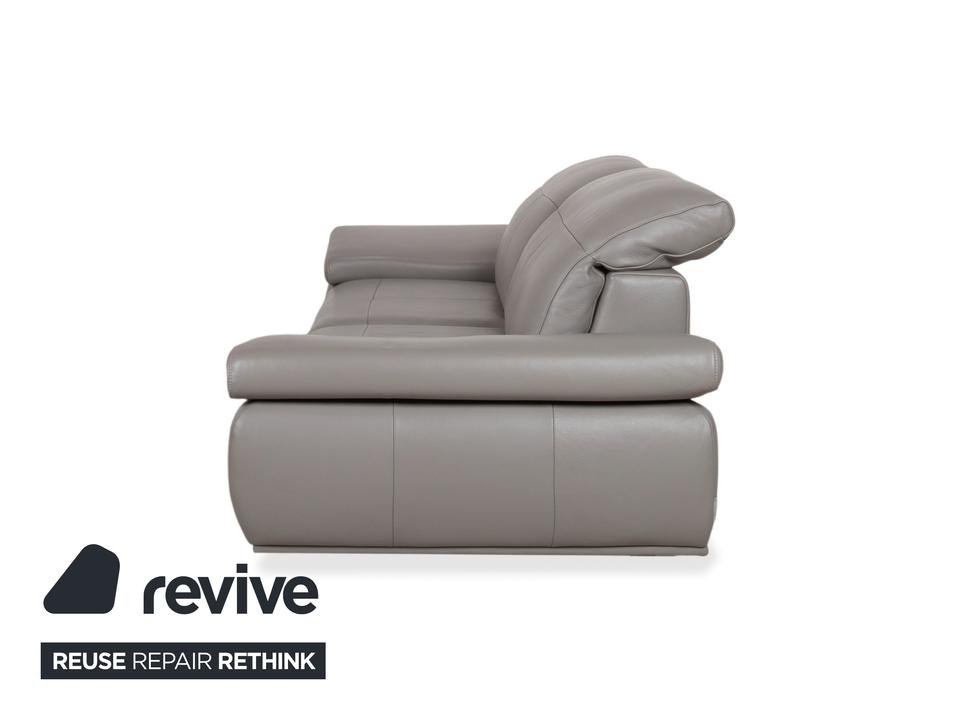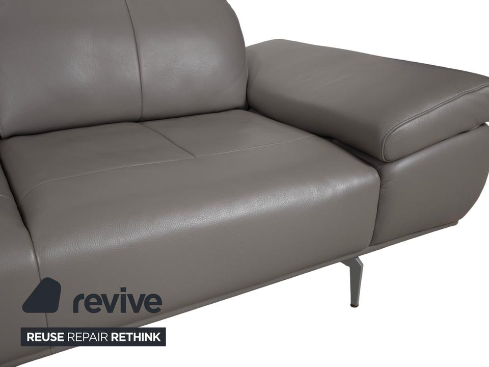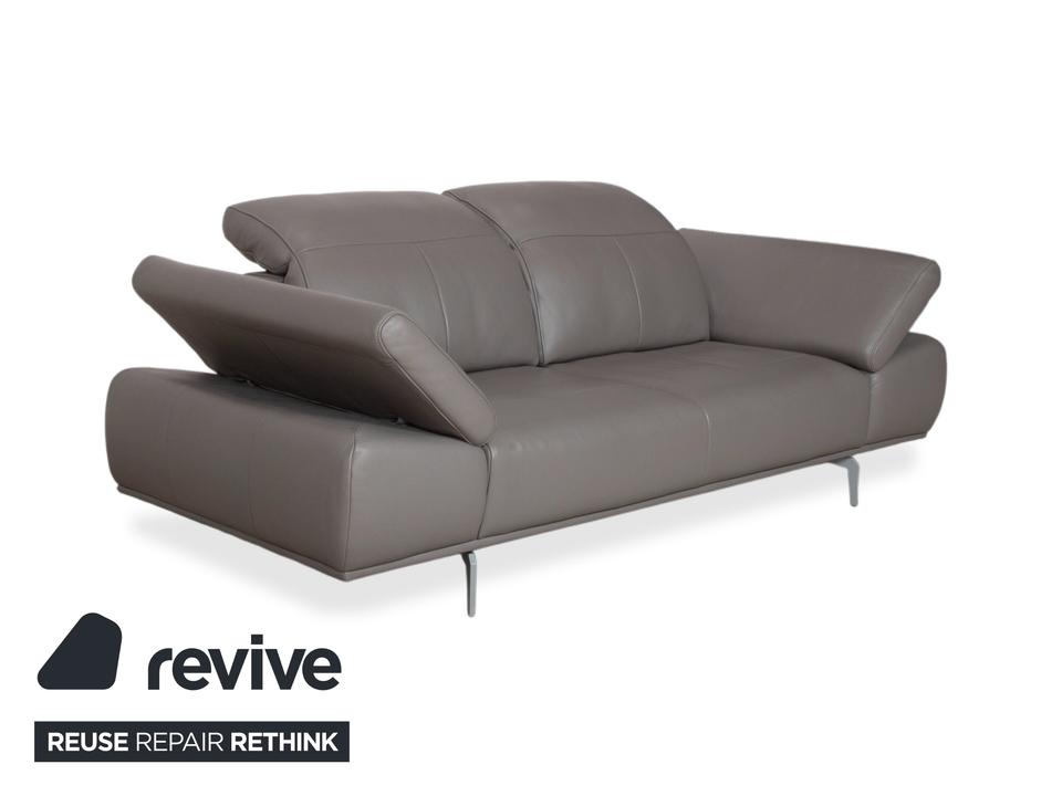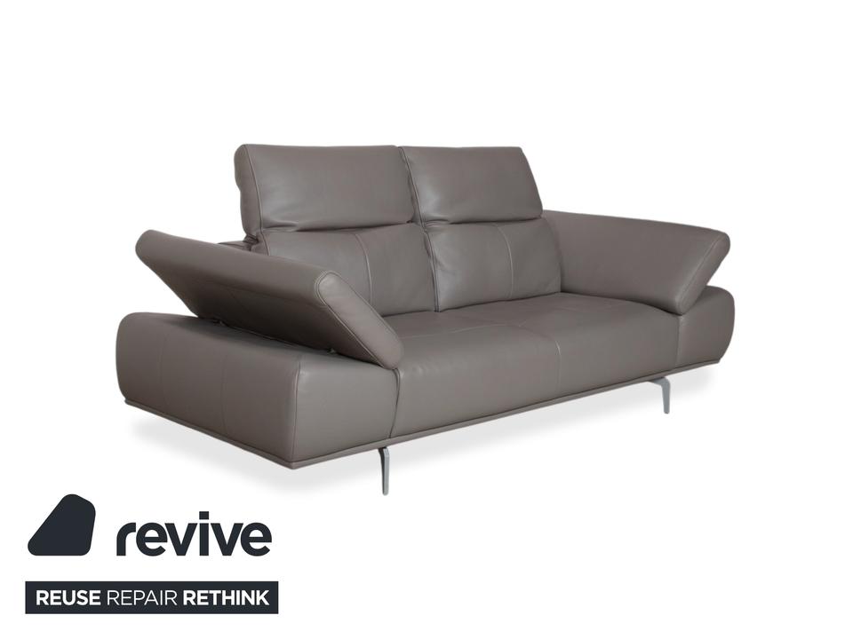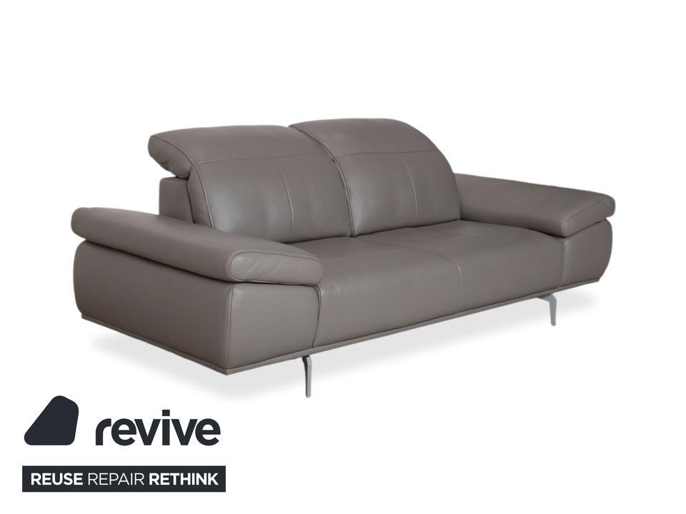Das Willi Schillig Levi Sofa ist ein Paradebeispiel für modernes, bodenfreies Design, das Leichtigkeit und Komfort perfekt vereint. In der Farbe Elephant Gray (Leder Z77/25) präsentiert sich dieser Zweisitzer in einem edlen, warmen Grauton, der je nach Lichteinfall sehr nuanciert wirkt. Die Kombination aus der klaren Linienführung und den filigranen Metallfüßen verleiht dem Sofa eine fast schwebende Optik.W.Schillig ist bekannt für exzellente Lederqualität, und das Z77-Leder zeichnet sich durch seine angenehme Griffigkeit und Langlebigkeit aus. Die markanten Einzüge in der Sitzfläche geben dem Levi seinen charakteristischen Look und verhindern gleichzeitig eine übermäßige Wellenbildung des Leders.Das Modell Levi verfügt über eine manuelle Funktionsvielfalt, die das Sitzerlebnis individualisiert. Bei dieser Serie lassen sich die Seitenteile (Armlehnen) über einen Rasterbeschlag mehrstufig verstellen – von einer flachen Liegeposition bis hin zur steilen Stütze. Zudem sind die Kopfstützen manuell in der Neigung anpassbar, sodass Sie beim Lesen oder Fernsehen eine optimale Unterstützung im Nackenbereich erhalten.