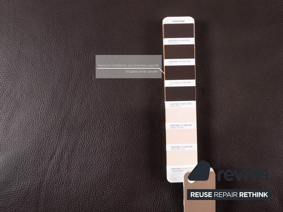 Das Ecksofa Loop von Willi Schillig ist mit einem braunen Glattleder bezogen und steht auf schlanken Aluminiumfüßen. Zwei Lehnen können verstellt werden, sodass verschiedene Relaxareale entstehen. Das schlanke Design sorgt für Luftigkeit und Eleganz.