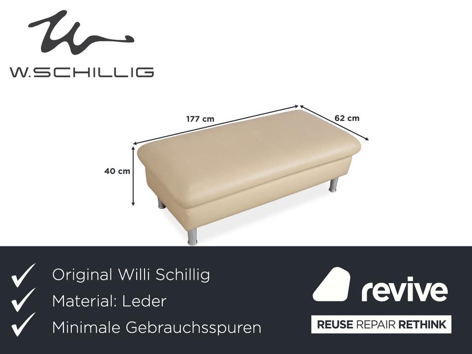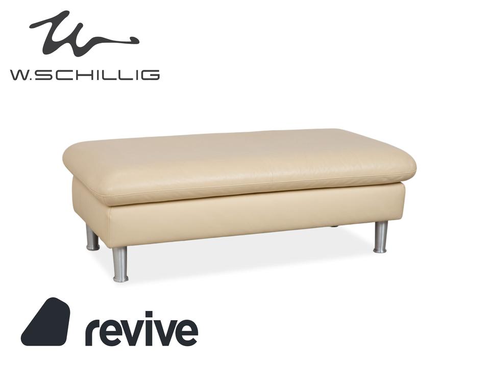 Hier bekommst du einen kompakten Hocker der Serie Loop vom deutschen Hersteller Willi Schillig, der die ideale Ergänzung für jedes Wohnzimmer ist. Der Hocker besticht durch seine einladend rundliche Form und das praktische Format, das sich wunderbar in moderne Einrichtungsstile einfügt. In einem cremefarbenen Leder gehalten, wirkt das Möbelstück freundlich und bringt eine helle, aufgeräumte Optik in dein Zuhause.Der Korpus steht auf schlichten, zylindrischen Metallfüßen, die dem Polsteraufbau eine angenehme visuelle Leichtigkeit verleihen. Nutze ihn einfach klassisch, um nach einem langen Tag die Beine hochzulegen, oder als zusätzliche Sitzgelegenheit für Gäste. Was uns an diesem Entwurf besonders gefällt, ist die robuste Verarbeitung des Leders, die den Hocker zu einem echt langlebigen Begleiter für deinen Alltag macht.