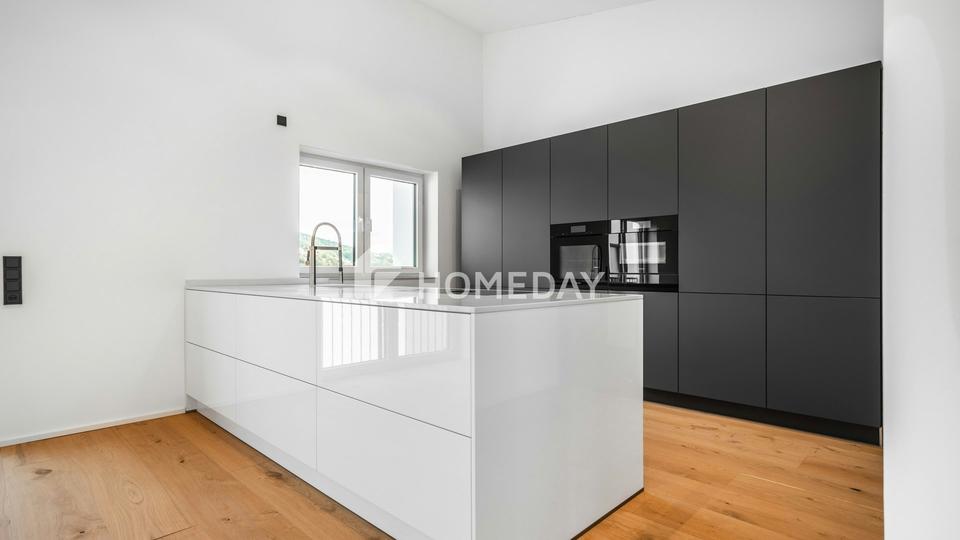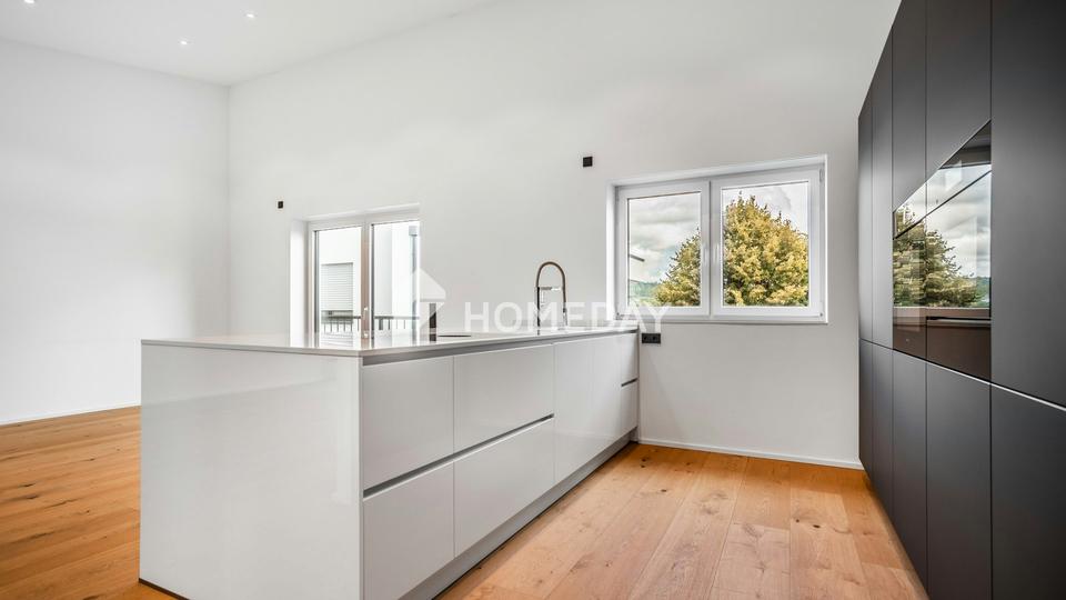 Der großzügige Wohn-/Essbereich mit der offenen Küche wird Sie und ihre Gäste ins Schwärmen bringen. Die Markenküche im Wert von ca. 29.000,00 Euro ist im Preis inkludiert und überzeugt mit allen technischen Raffinessen. Ein Kochfeld mit integriertem Dunstabzug, Backofen und Dampfgarer in Bedienhöhe sowie eine riesige Arbeitsfläche und eine Vielzahl an Schränken und Schubladen.