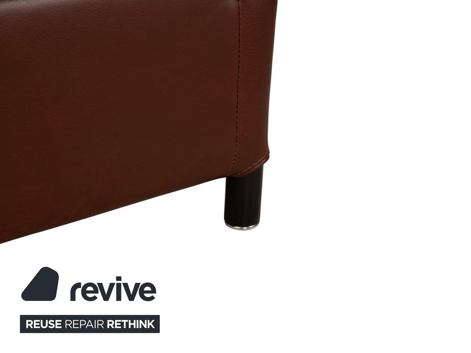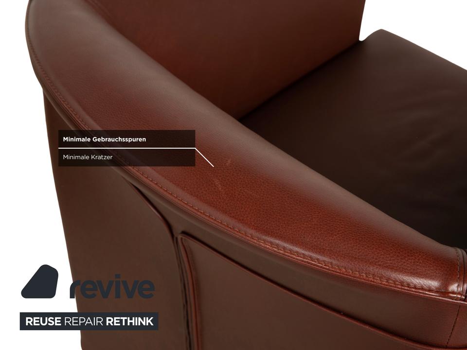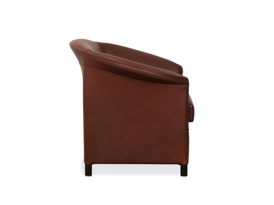 Der Wittmann Aura XL ist der Beweis, dass ein kompakter Sessel nicht ungemütlich sein muss. Ganz im Gegenteil: Durch die halbrunde Form, bei der die Rückenlehne fließend in die Armlehnen übergeht, fühlst du dich hier richtig „umarmt“. Das Leder in einem tiefen Braunton mit leicht rötlichem Einschlag wirkt sehr edel und warm, was dem Sessel eine gewisse Schwere nimmt.Obwohl er optisch eher an einen klassischen Cocktailsessel erinnert, bietet die „XL“-Variante spürbar mehr Platz und Sitzkomfort. Er steht auf schlichten, schwarzen Füßen, die den Fokus voll auf den lederbezogenen Korpus lenken. Ein ideales Möbelstück für die Leseecke oder als stilvolle Ergänzung zum Sofa, wenn du nicht viel Stellfläche verbrauchen, aber trotzdem bequem sitzen willst.