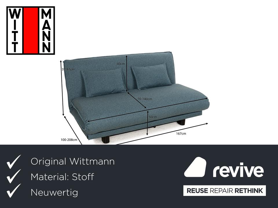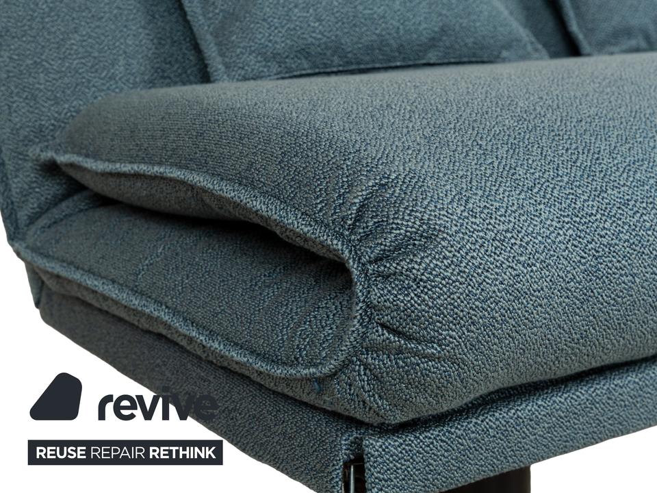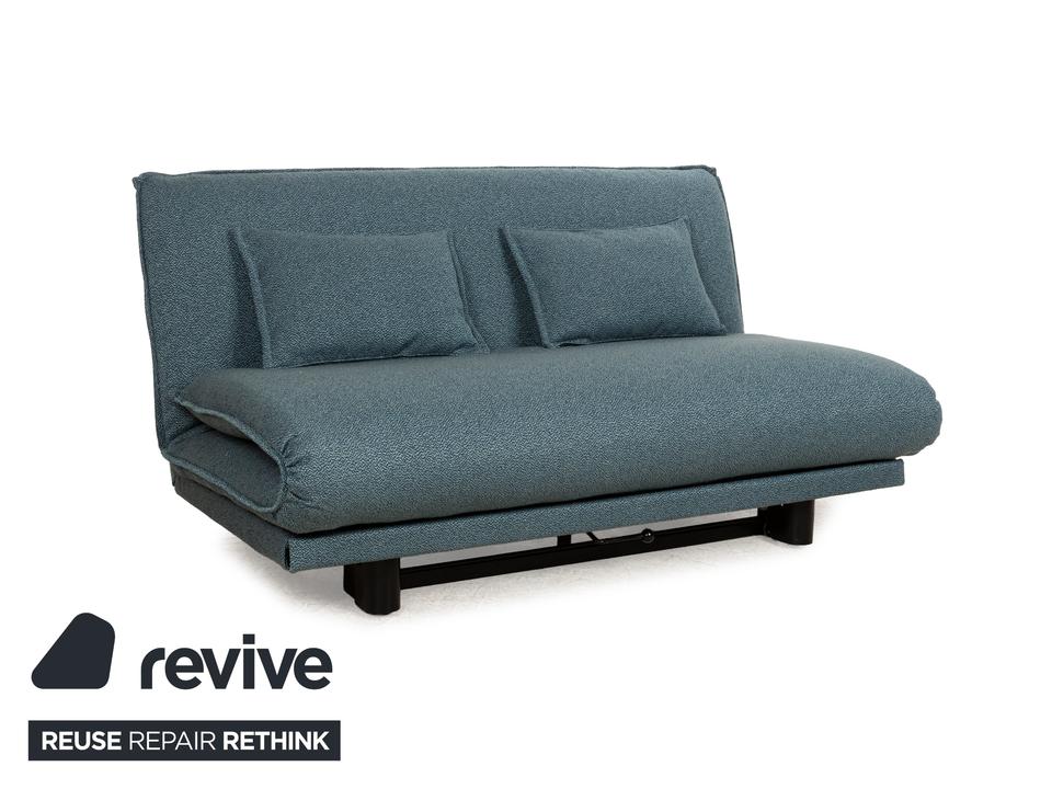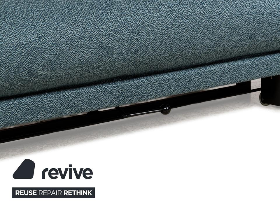 Das Sofa Colli von Wittmann ist mit einem blauen Stoff neu bezogen worden und steht auf einem schwarzen Metallgestell. Das reduzierte Design dieses Zweisitzers zeichnet es aus – angenehme Rundungen, eine tiefe Sitzfläche und der Verzicht auf Dekor. Mit einem Handgriff lässt sich das Sofa in ein Schlafsofa verwandeln. Material: GLOW 529 Q2 von RohlederDer verwendete Stoff von Rohleder ist von höchster Qualität: Made in Germany, bis 30 °C waschbar und leicht zu reinigen. Er überzeugt durch höchste Lichtechtheiten, kommt ohne chemische Ausrüstung und trägt das Prüfsiegel für körperverträgliche Textilien. Der Stoff ist klimaneutral produziert und wird durch eine 5 Jahre Hersteller-Garantie unterstützt – für langlebige Qualität und Wohlbefinden.