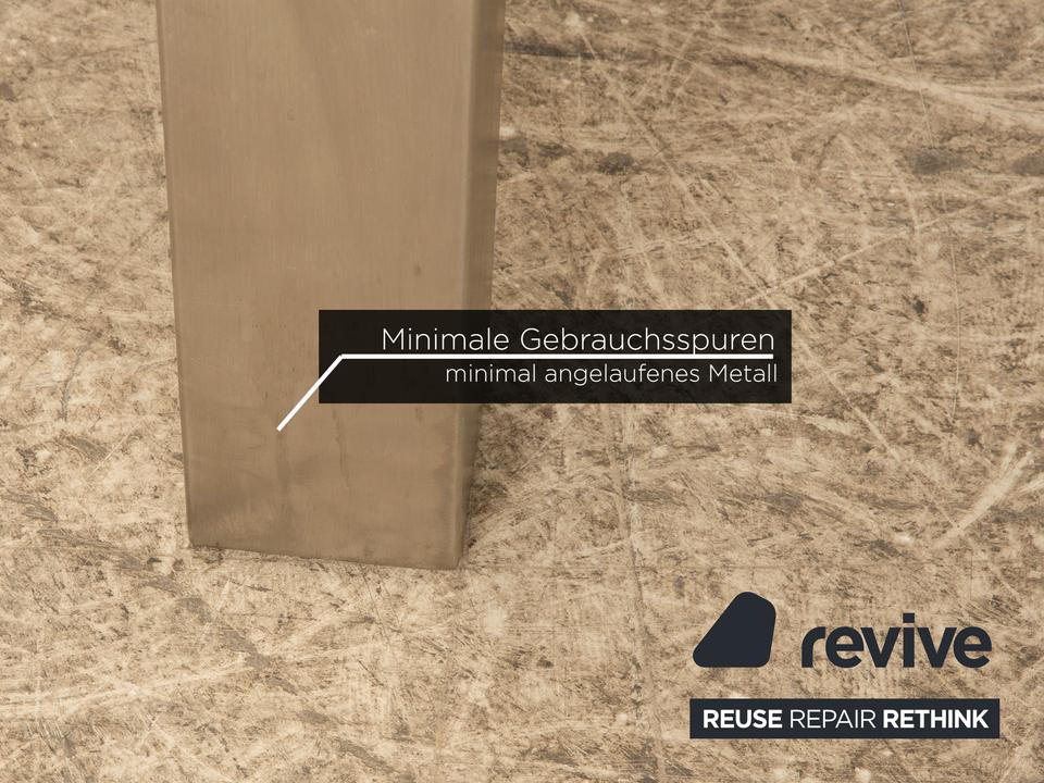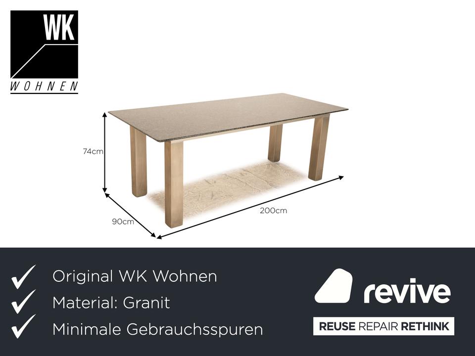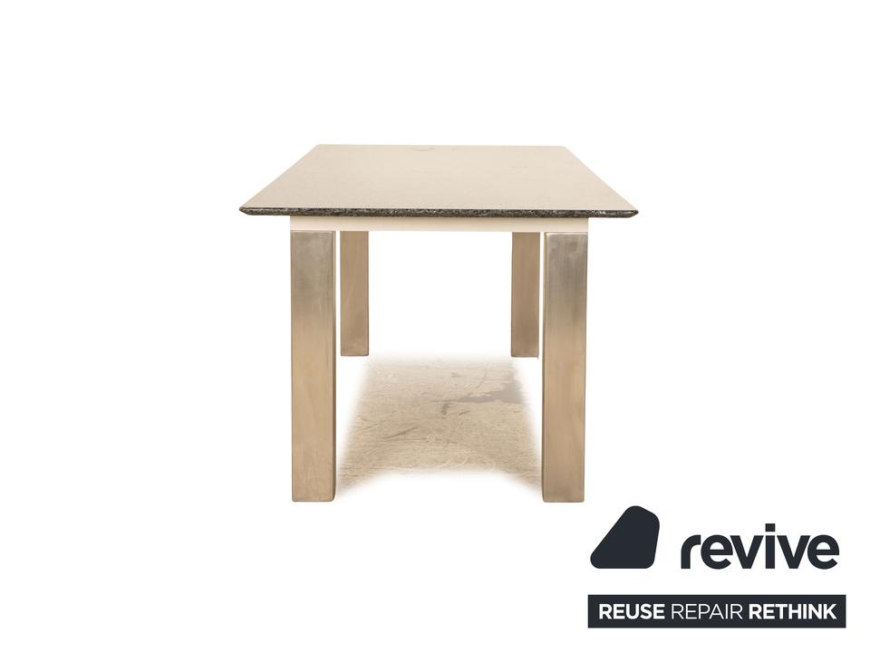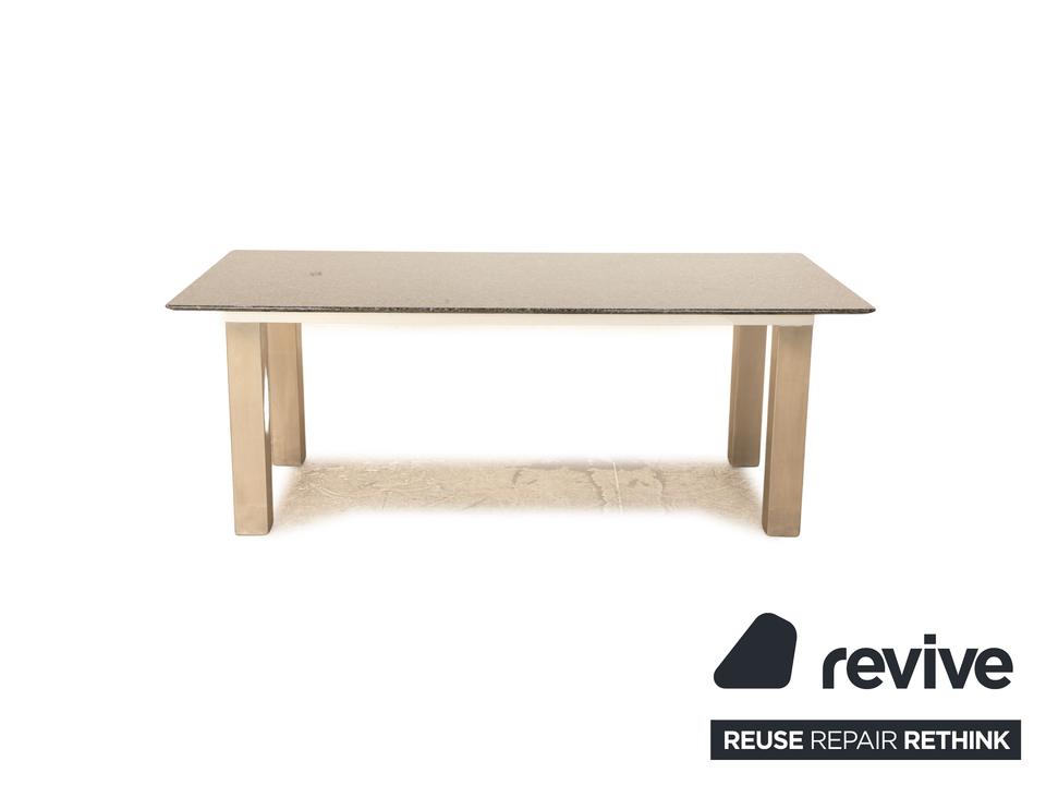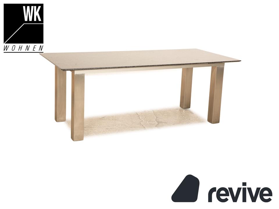 Der Esstisch von WK Wohnen besteht aus einer Granitplatte und steht auf silbernen Metallfüßen. Er zeichnet sich durch das stilvolle Design und die massive, moderne Optik aus.