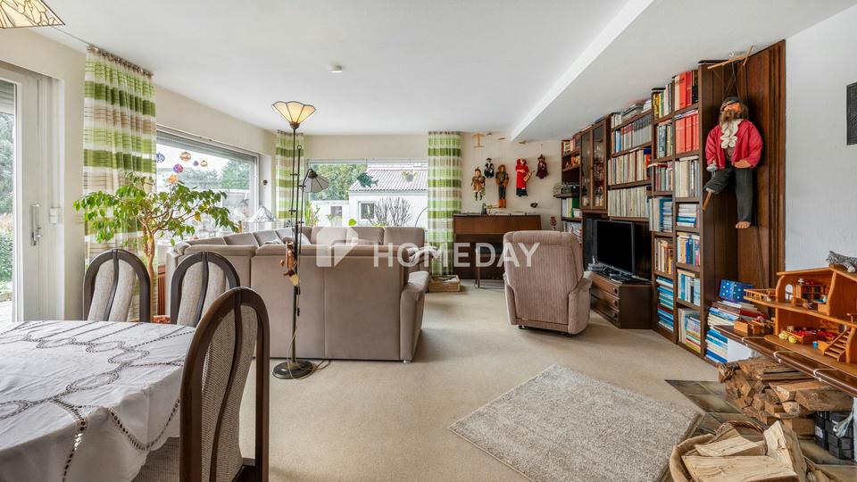 Willkommen in Ihrem neuen Zuhause! Diese großzügige Immobilie mit einer Wohnfläche von 216 Quadratmetern bietet Ihnen viel Raum für individuelles Wohnen und überzeugt durch ihre großzügige Raumaufteilung, einen tollen Zustand sowie die Einliegerwohnung, die gut vermietet ist. Das Erdgeschoss empfängt Sie mit einem lichtdurchfluteten Wohnzimmer, das durch einen gemütlichen Kamin zu entspannten Stunden einlädt. Eine große Schiebetür führt Sie auf die weitläufige Terrasse, die mit einer praktischen Markise ausgestattet ist – ideal für sonnige Tage. Eine zweite, kleinere Terrasse ergänzt den Außenbereich und bietet weiteren Raum zum Entspannen.