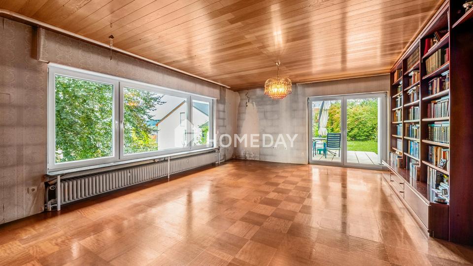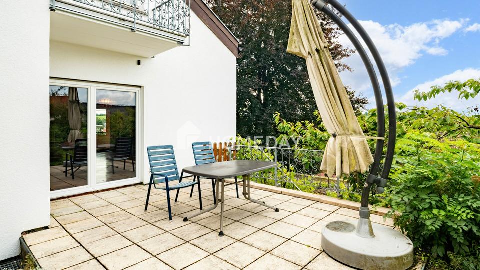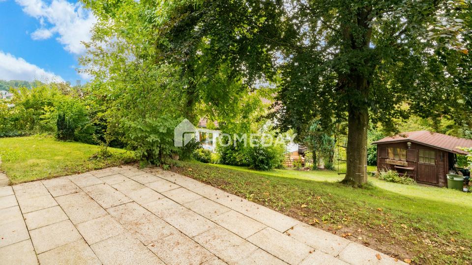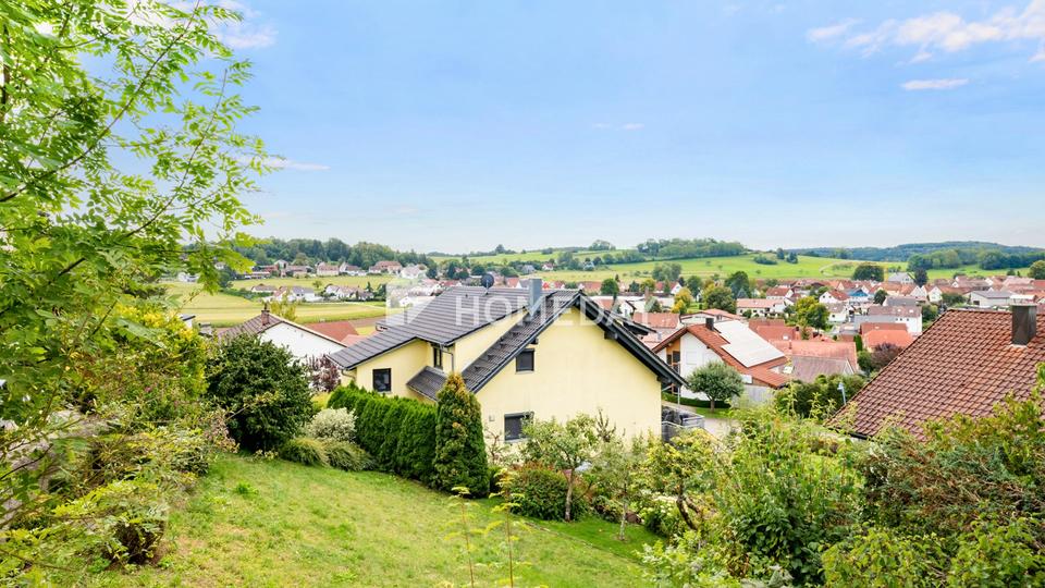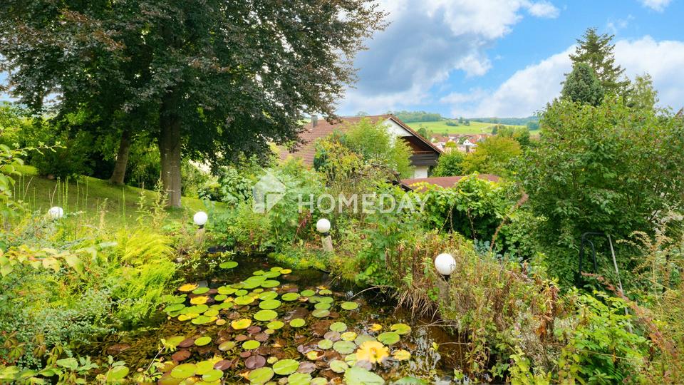 Das weitläufige Grundstück von rund 1.216 Quadratmetern ist liebevoll angelegt und bietet neben gepflegten Rasenflächen zahlreiche Rückzugsorte: Ein idyllischer Bachlauf, ein Springbrunnen, ein Gartenteich und ein Pavillon mit Grillkamin schaffen ein einzigartiges Ambiente. Der gesamte Außenbereich unterstreicht die ruhige Wohnlage samt herrlichem Blick auf die Umgebung.
