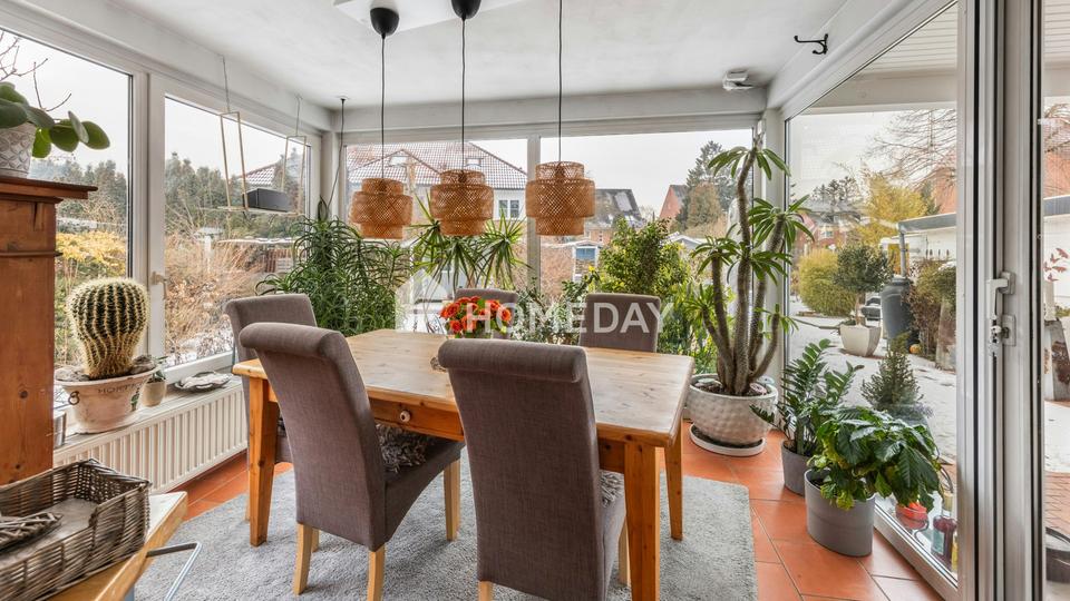 • zwei Wintergärten, einer am Wohnzimmer mit Südausrichtung und einer an der Küche mit Westausrichtung