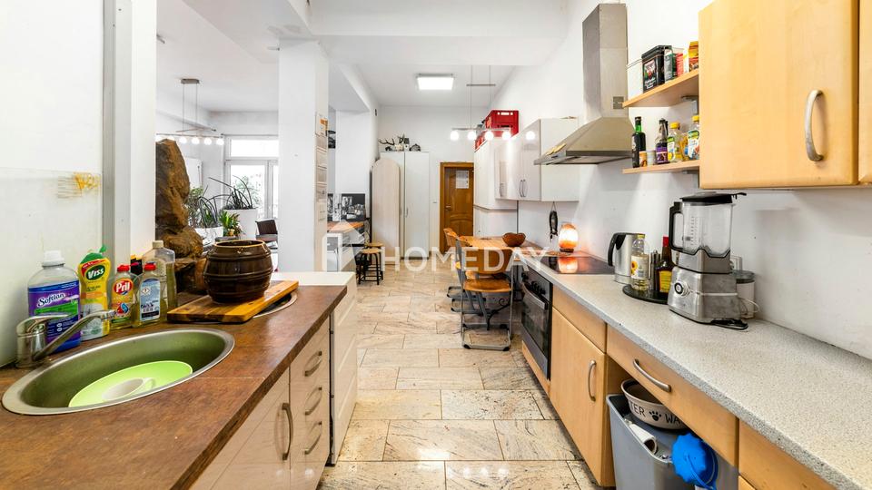 Die Einheit im Erdgeschoss bietet eine Gesamtfläche von ca. 89 Quadratmetern und umfasst derzeit drei Zimmer, eine Küche sowie ein Tageslichtbad. Hohe Decken sowie großflächige Fensterflächen steigern hier den Wohnkomfort.