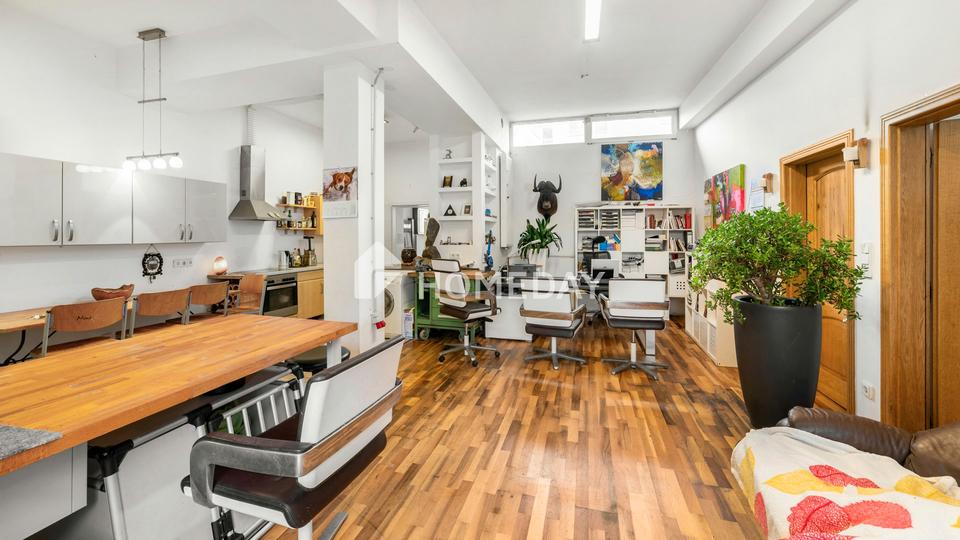 Besonders hervorzuheben ist die flexible Nutzungsmöglichkeit: Die Fläche ist aktuell als Büro/Gewerbeeinheit im deklariert, kann jedoch auch wohnwirtschaftlich verwendet werden. Hierfür ist noch ein entsprechender Umnutzungsantrag zu stellen.