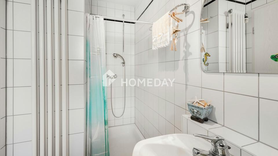 • Beide Bäder verfügen über Tageslicht und sind unter anderem mit einer Badewanne und einer Dusche ausgestattet.