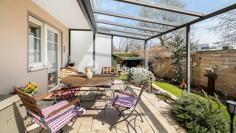 Ein besonderes Augenmerk verdient die hochwertige Ausstattung dieses Reihenhauses. Eine moderne Photovoltaikanlage mit Speicher sorgt für eine nachhaltige Energieversorgung und trägt zur Reduzierung der Nebenkosten bei. Der lichtdurchflutete Wintergarten lädt dazu ein, die Natur zu genießen und bietet einen zusätzlichen Raum für entspannte Stunden.