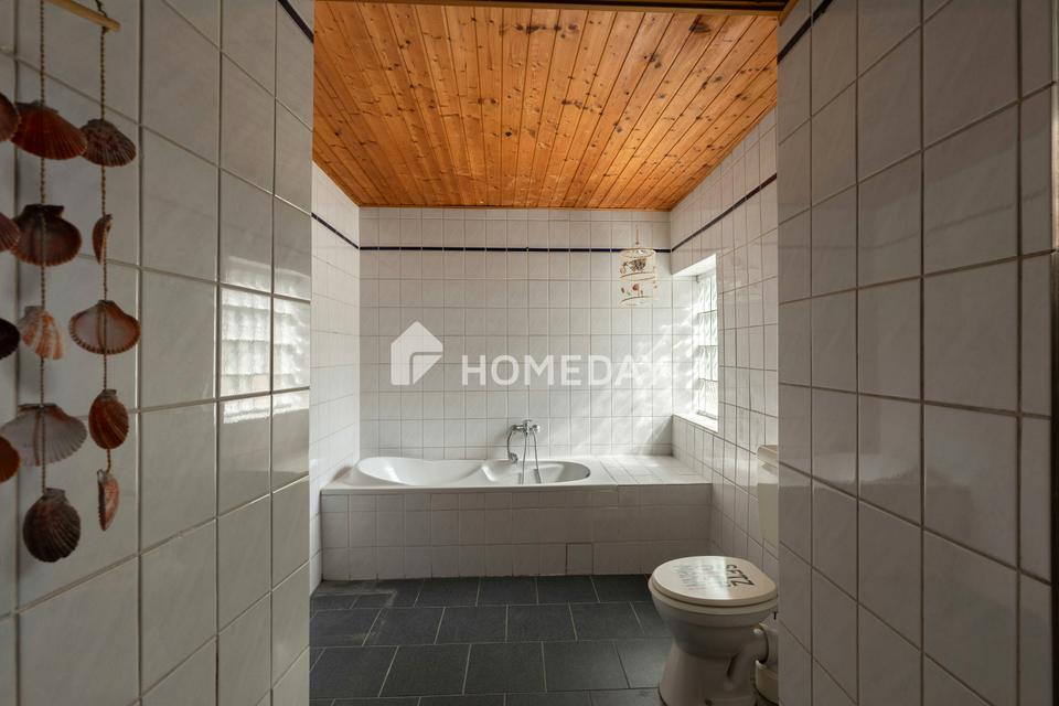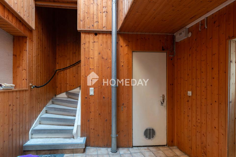 Die Böden im Erdgeschoss sind mit langlebigen Fliesen und im Obergeschoss mit Laminat ausgelegt, was ein angenehmes Wohngefühl vermittelt.
